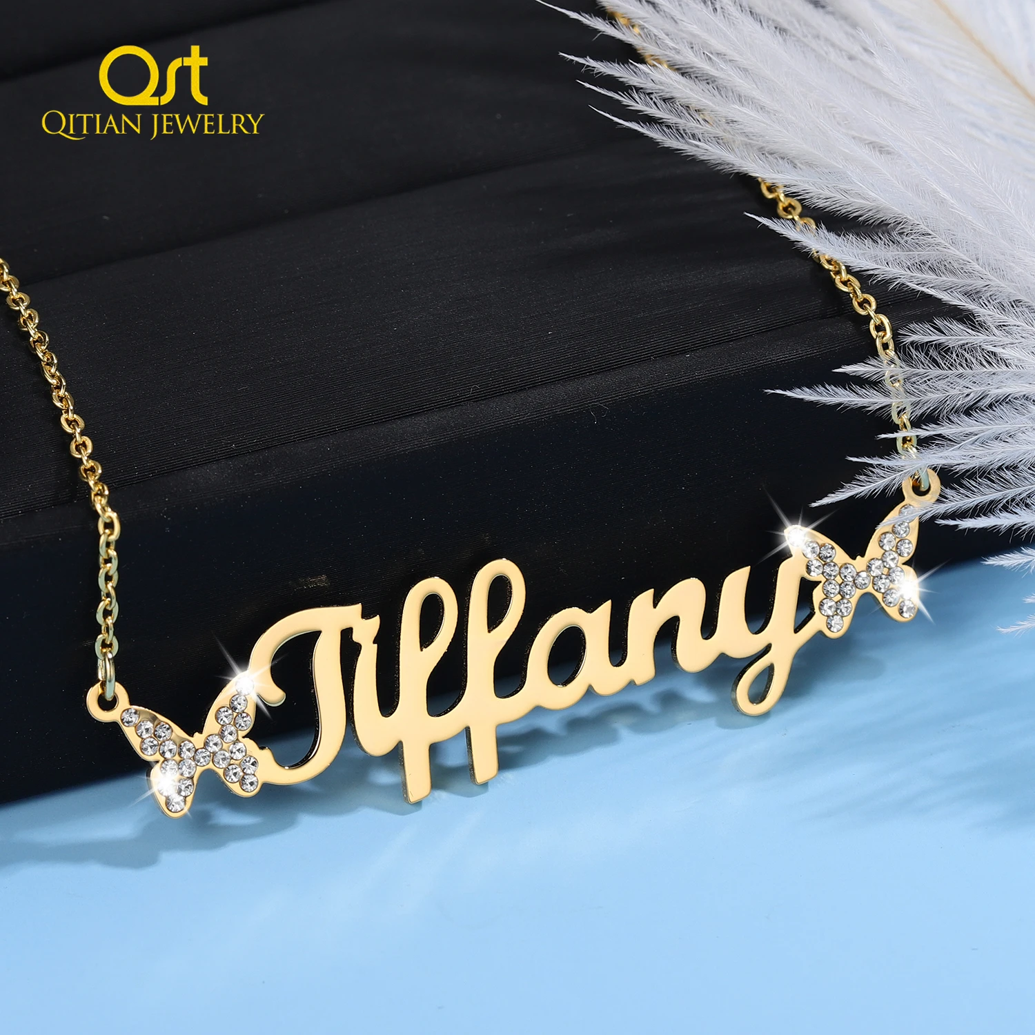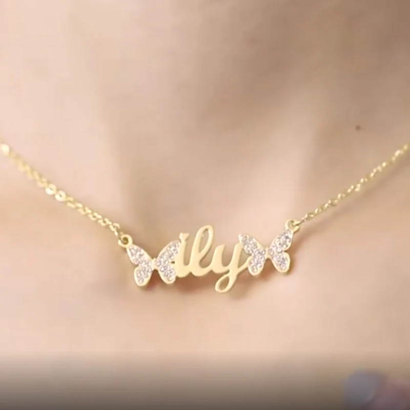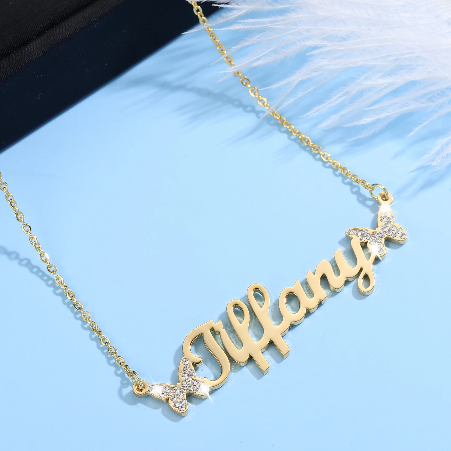 Ожерелье и подвеска с именем в виде бабочки, из нержавеющей стали
