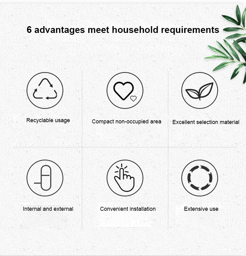 * 6 основных преимуществ для удовлетворения бытовых потребностей: перерабатываемый, маленький и компактный, оптимальный материал, как внутренний, так и внешний, простой в установке и универсальный