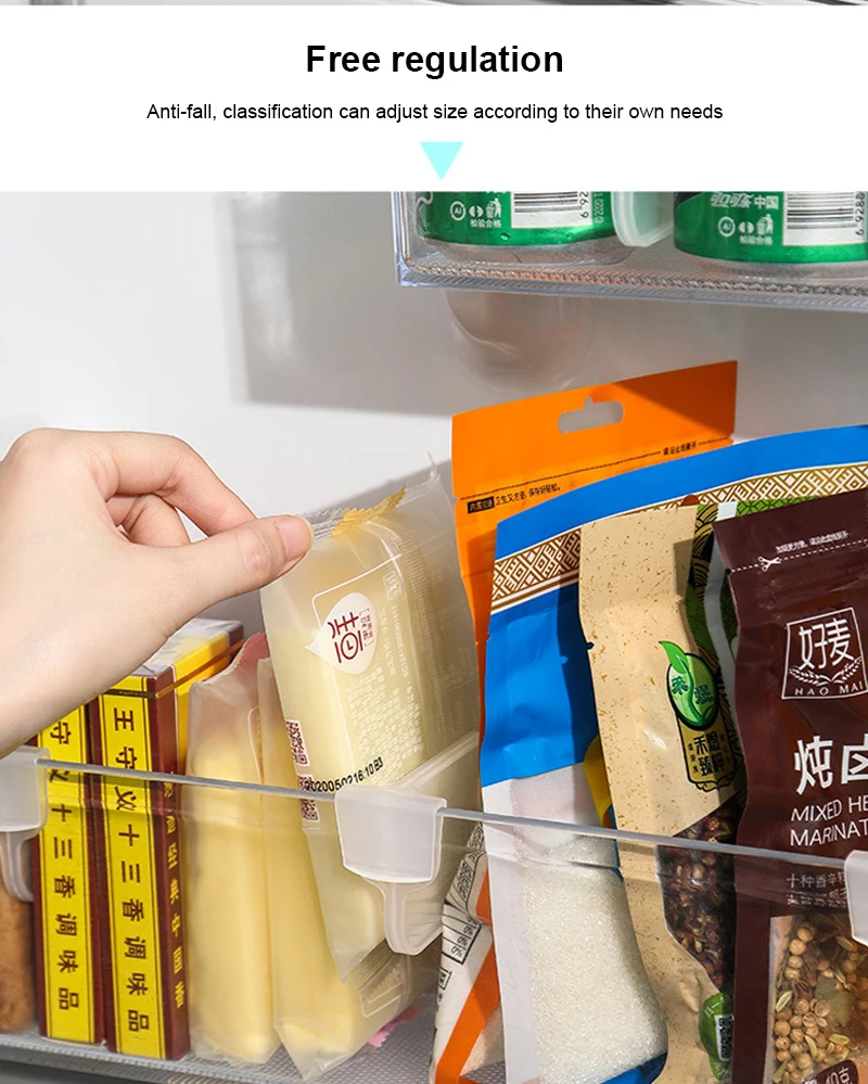 * Более практичное хранение отсека: специально разработано для бокового отсека холодильника, подвешивается и устанавливается, практично и удобно; Боковой отсек классифицирован и хранится, легко найти с первого взгляда