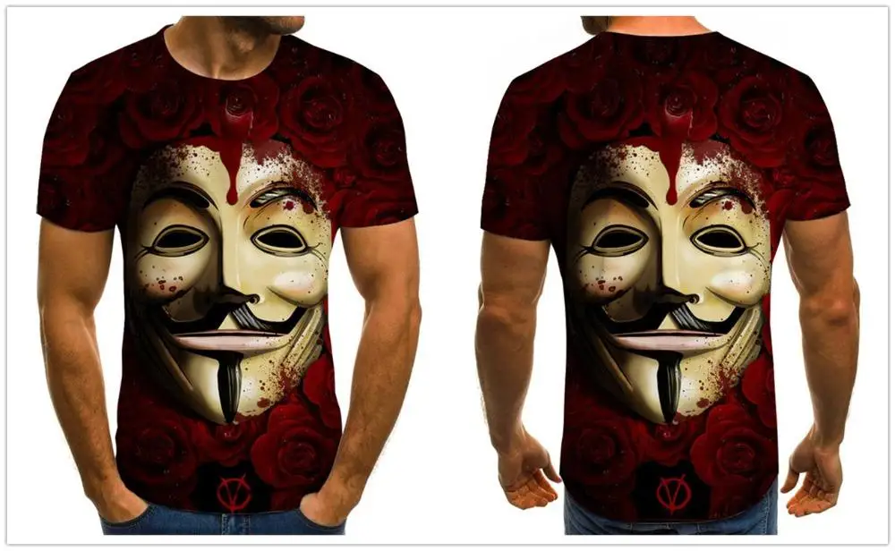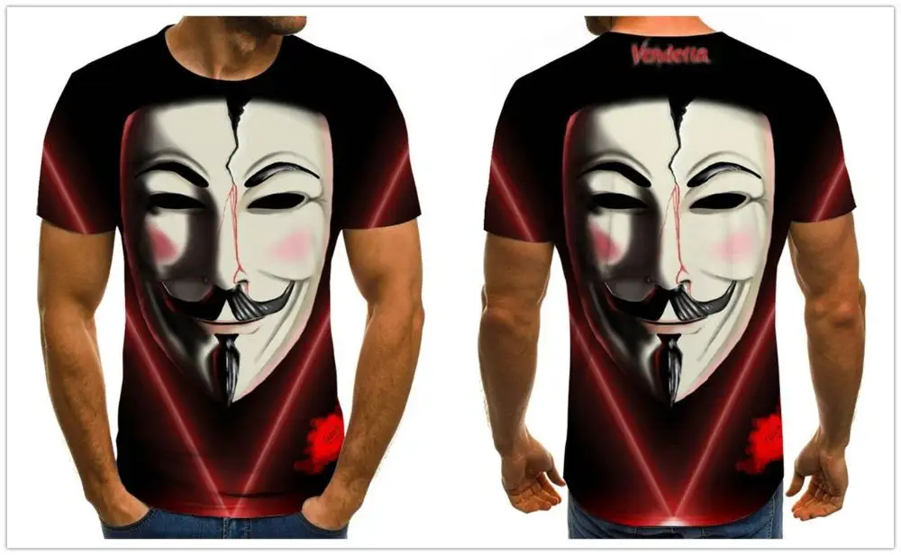 Мужская футболка с 3D-принтом Вендетта, летняя спортивная футболка ...