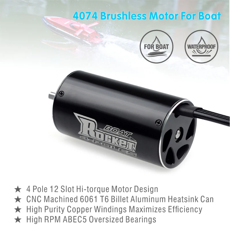 Высококачественный бесщеточный водонепроницаемый мотор Rocket 4074 1700KV 4P с крышкой для куртки водяного охлаждения, вал 5 мм для радиоуправляемой лодки 1000 мм