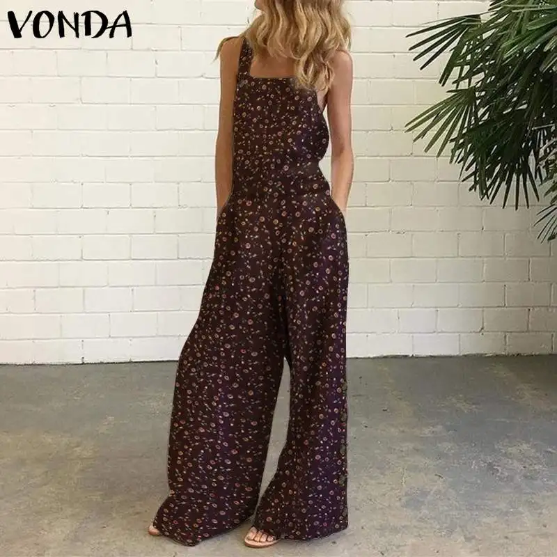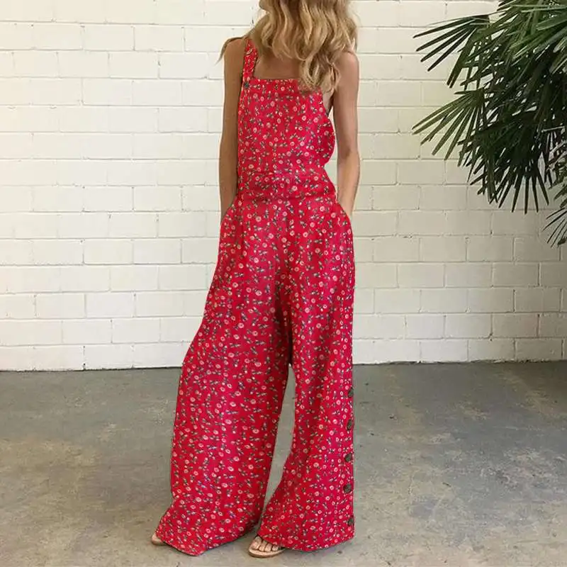 Женский комбинезон с цветочным принтом, с широкими штанинами