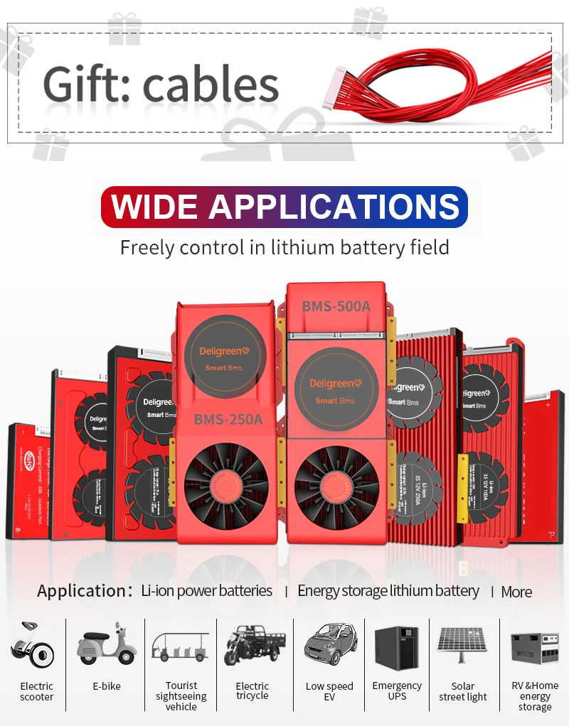 Бесплатные детали, как показано ниже 1) модуль Bluetooth 2) кабель USB к UART 3) кабель USB к RS485 (только для модуля RS485 /CAN) 4) датчик температуры требует дополнительной покупки 1) сенсорный ЖК-экран 2) индикатор заряда батареи