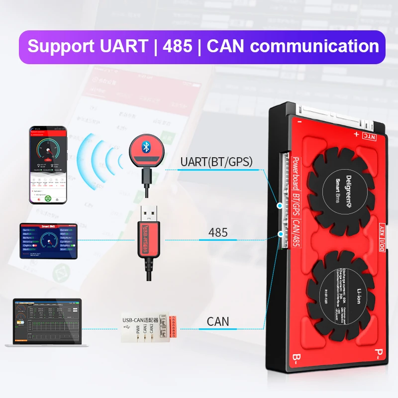 12 В BMS Smart BMS 4S 80A 100A 120A UART 485 CAN modbus Bluetooth Ж...