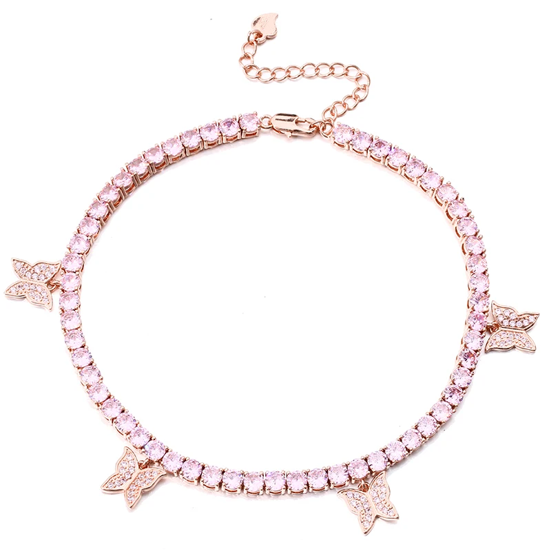 FSUNION 2022 браслет на ногу с бабочкой стразы цепь для тенниса цеп...