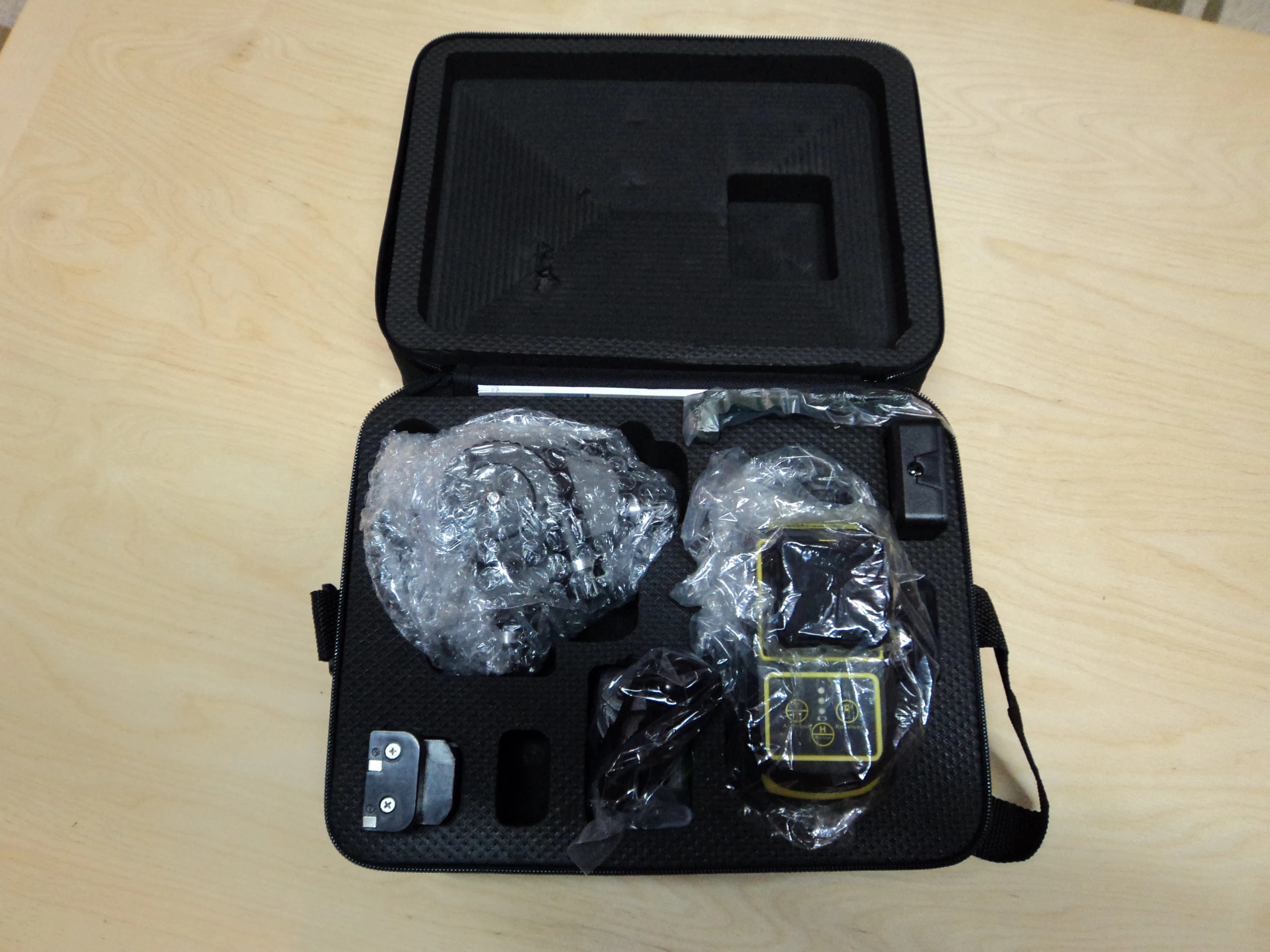 Весь комплект пришел в двух посылках - первая пришла очень быстро, там был кейс с лазером и всем остальным, вторая шла больше месяца, в ней был лифт. Все отличного качества, одно огорчение - это отсутствие в кейсе места для этого лифта, который придется хранить где-то отдельно.