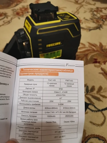 Сидя долго перед монитором, не особо разбираясь в этом, но с большим желанием самостоятельно сделать ремонт в доме, долго выбирал между моделями типа Hibiru, Deko, Hilda, Farecore и еще куча других вариантов. Потом вроде как определился, а потом посмотрел еще пару видео на ютубе и вообще окончательно запутался что брать, заебался скажу честно и просто взял Farecore 94. Так же выбирал между 93 и 94 моделью и выбрал что посвежее. Итак, посылка пришла, хрен знает сколько ждал, но это не главное. Сразу скажу, прибор работает отменно. Сразу проверил его, выставил линии на расстоянии 5 м от стены, сделал отметки, развернул на 180 градусов и все совпало. Но, есть совсем небольшой косячок, горизонтальная линия со стороны этикетки Farecore F94T-XG светит хорошо, ярко, а противоположная сторона - заметно тускнее. Это ни капли не смущает, но вы должны это знать. Штатив 1,5м так же очень понравился, стоит уверенно. В общем и целом советую.