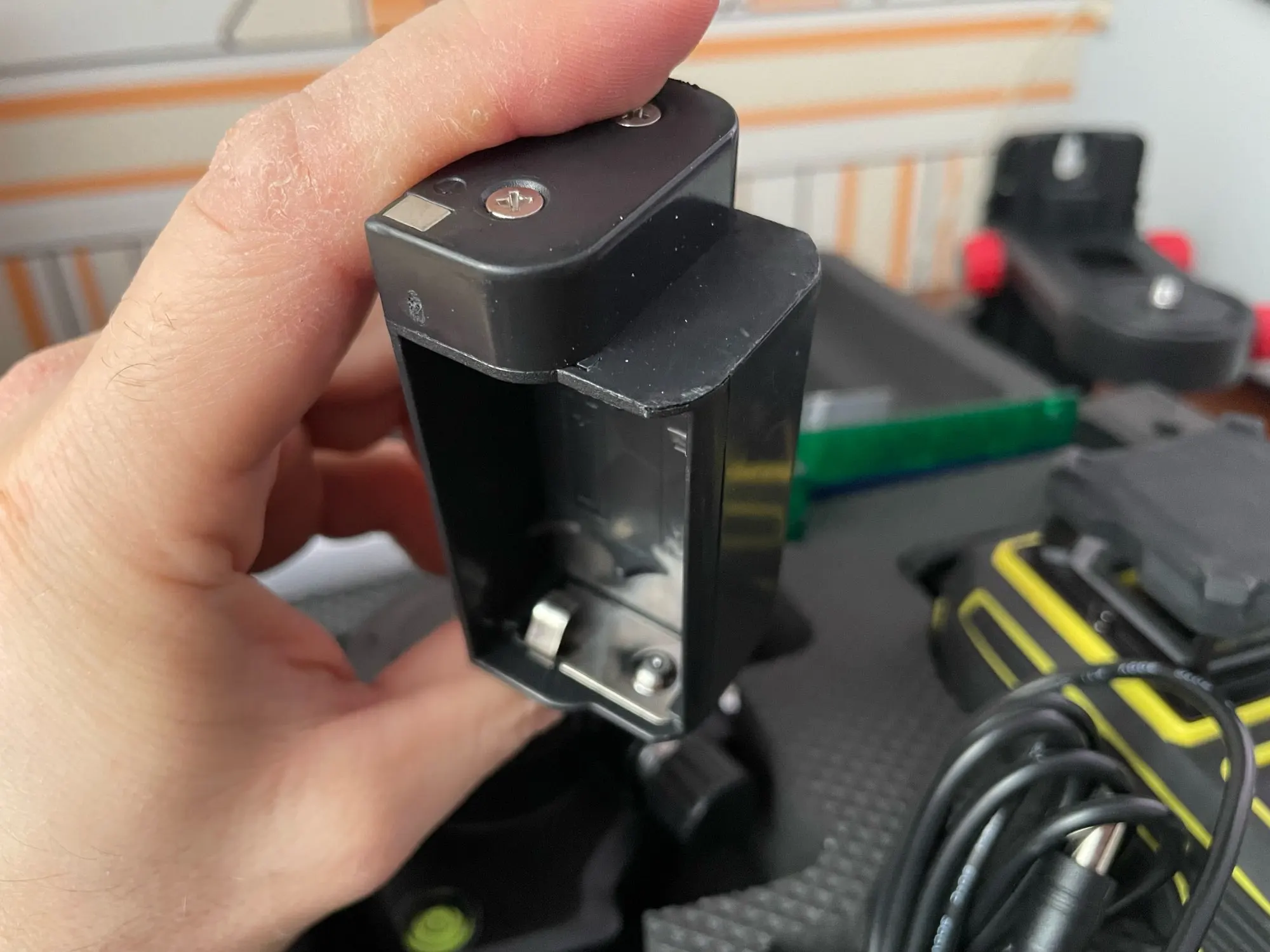 Хороший уровень, но есть нюансы. Паразитная засветка есть на вертикали, но небольшая и не яркая, мешать не будет никак. Тренога в комплекте устойчивая, но размеры самого нивелира дают знать, вес его с аккумулятором 673 грамма, может и упасть, нужно штатив брать. Остальное на фото можно увидеть. Приколхозил на треногу пробку от бутылки, т.к. резьба выедает уплотнитель, потом заглушку придумаю какую-нибудь. Брал на 11.11 скидках, остался доволен, за такую цену (со скидками) подобного нет.
