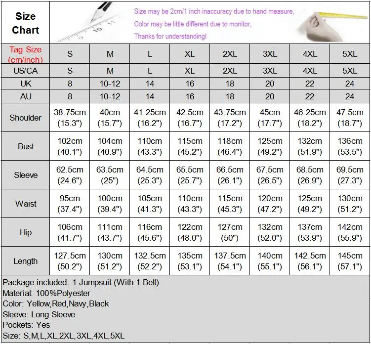 Пожалуйста, проверьте размеры в таблице размеров перед покупкой!Посылка включает в себя: 1 комбинезон (с 1 поясом)Материал: 100% полиэстерЦвет: желтый, красный, темно-синий, черныйРукав: длинный рукавКарманы: ДаРазмер: S,M,L,XL,2XL,Узор: пледДлина: до щиколоткиСтиль: для отдыхаСезон: весна, лето, осень, зимаПовод: вечерние, праздничные, уличные