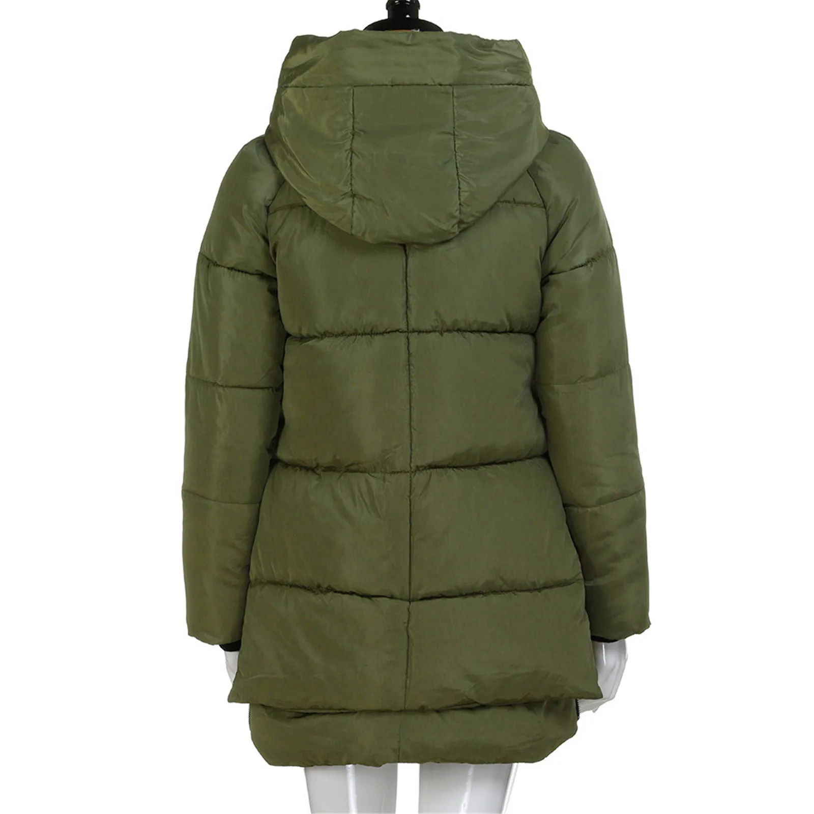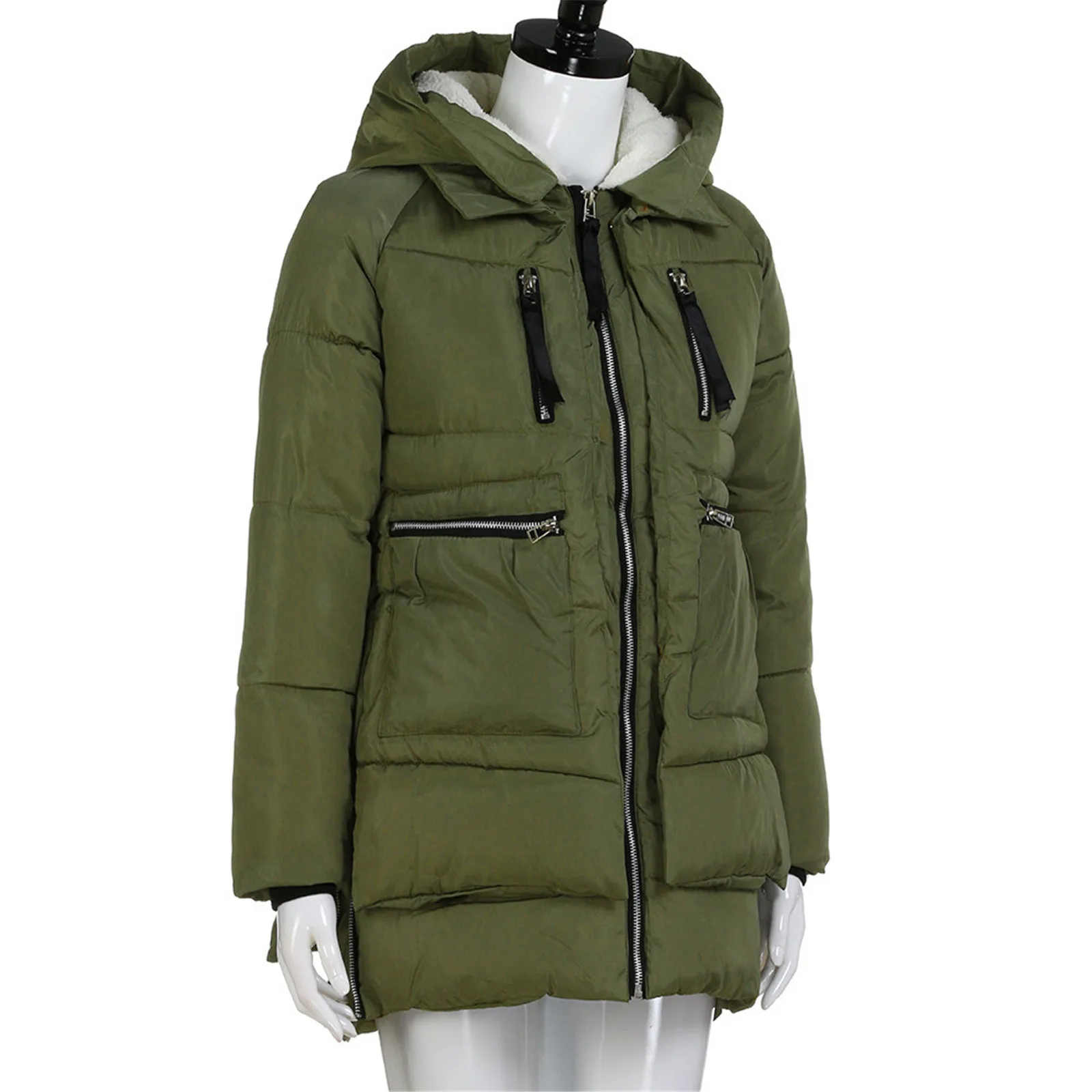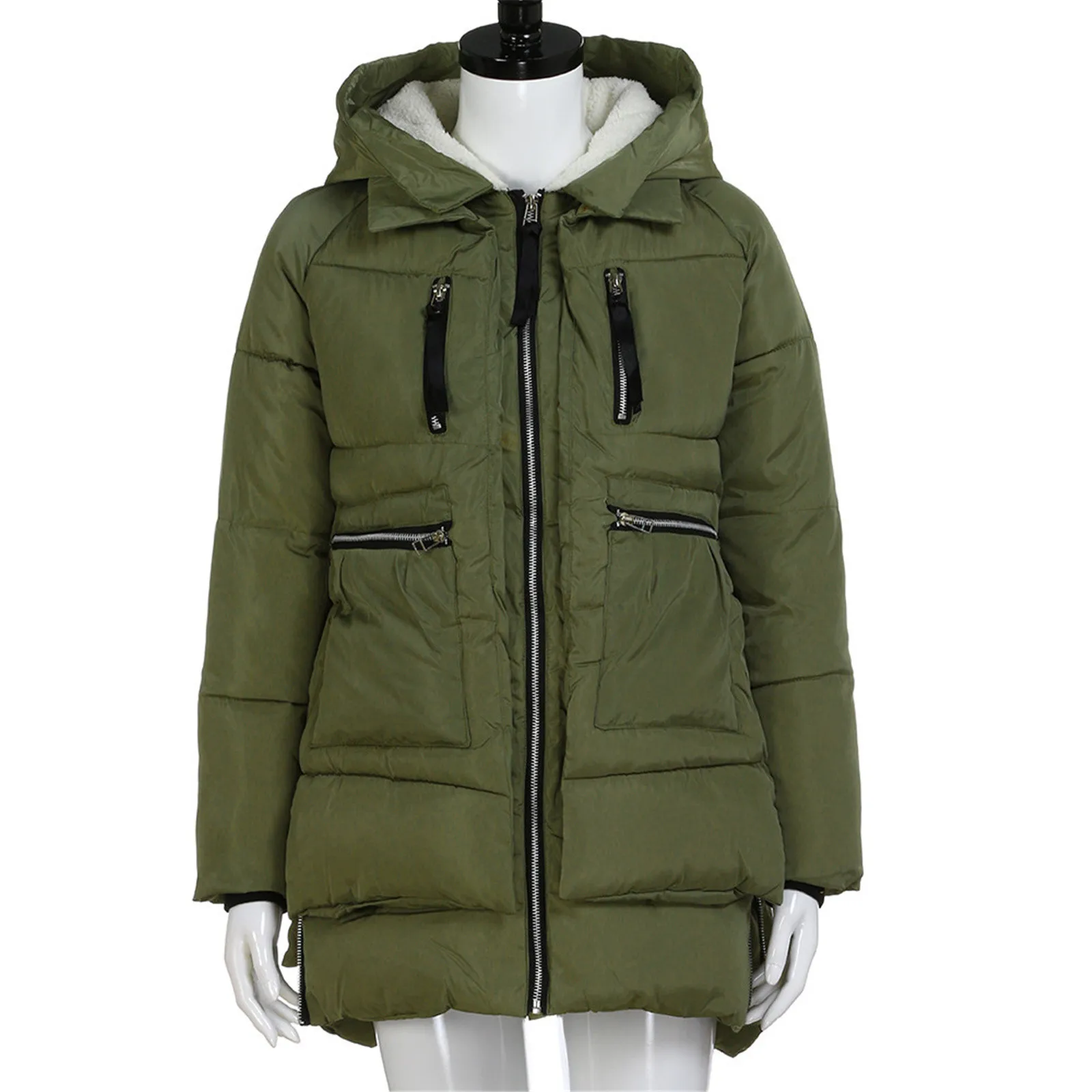 Зимнее пальто из хлопка, размера плюс, M-4xl, на молнии, с большими карманами, Женская однотонная зеленая верхняя одежда, куртки с капюшоном, утепленные пальто # T2G