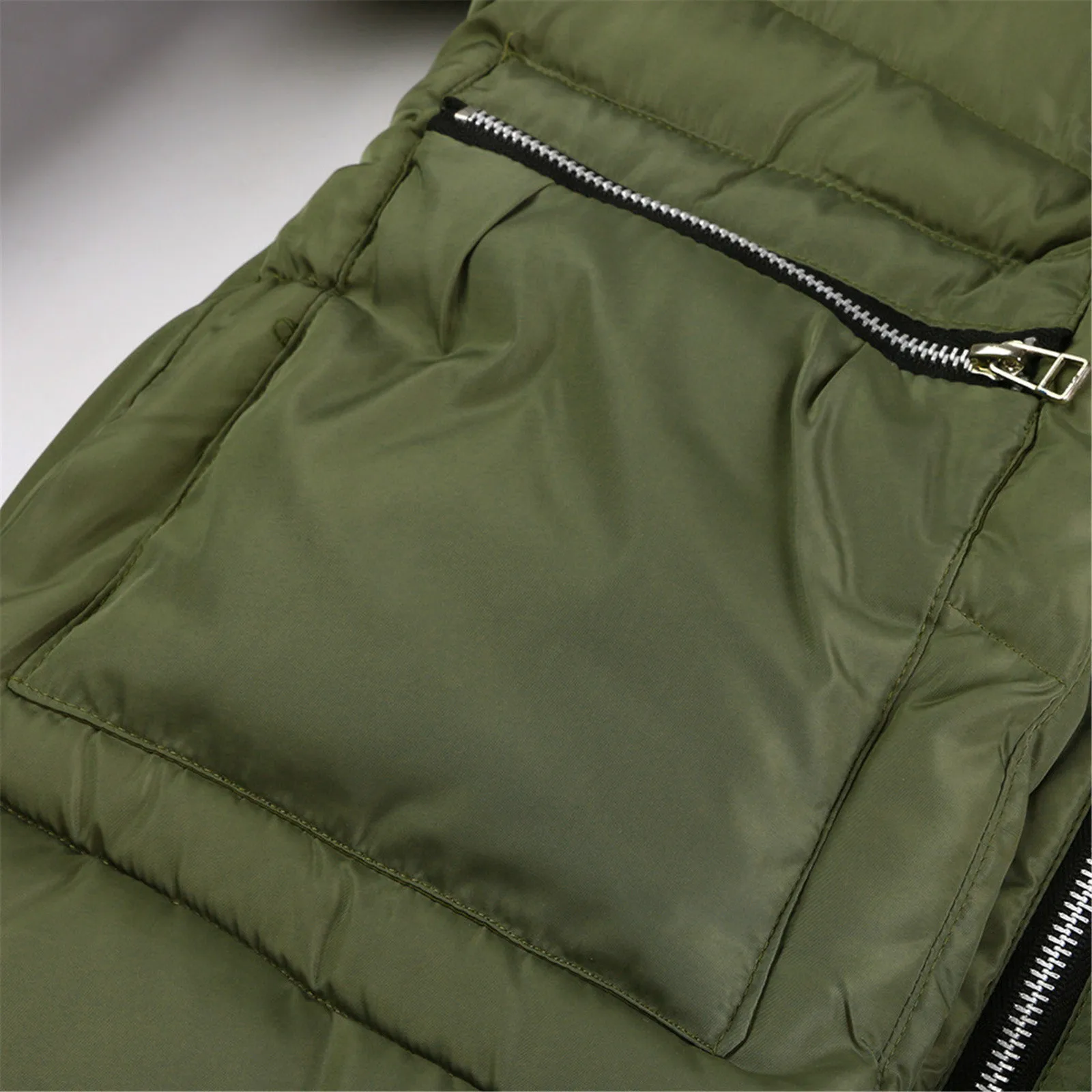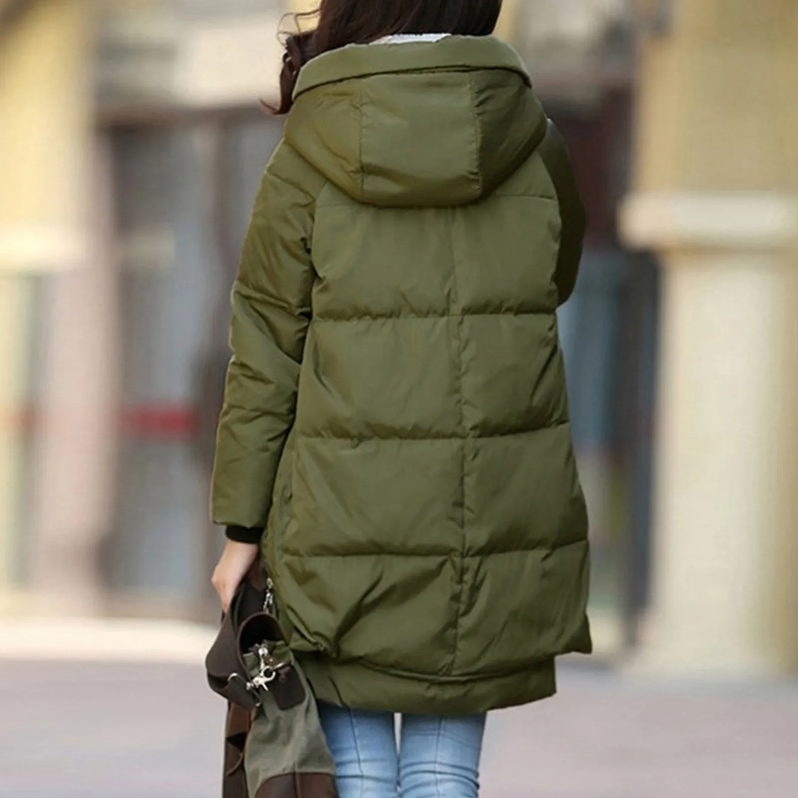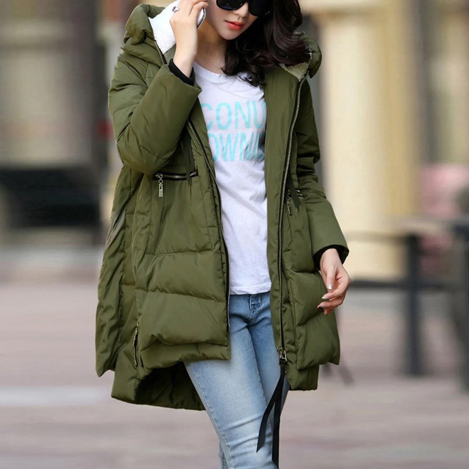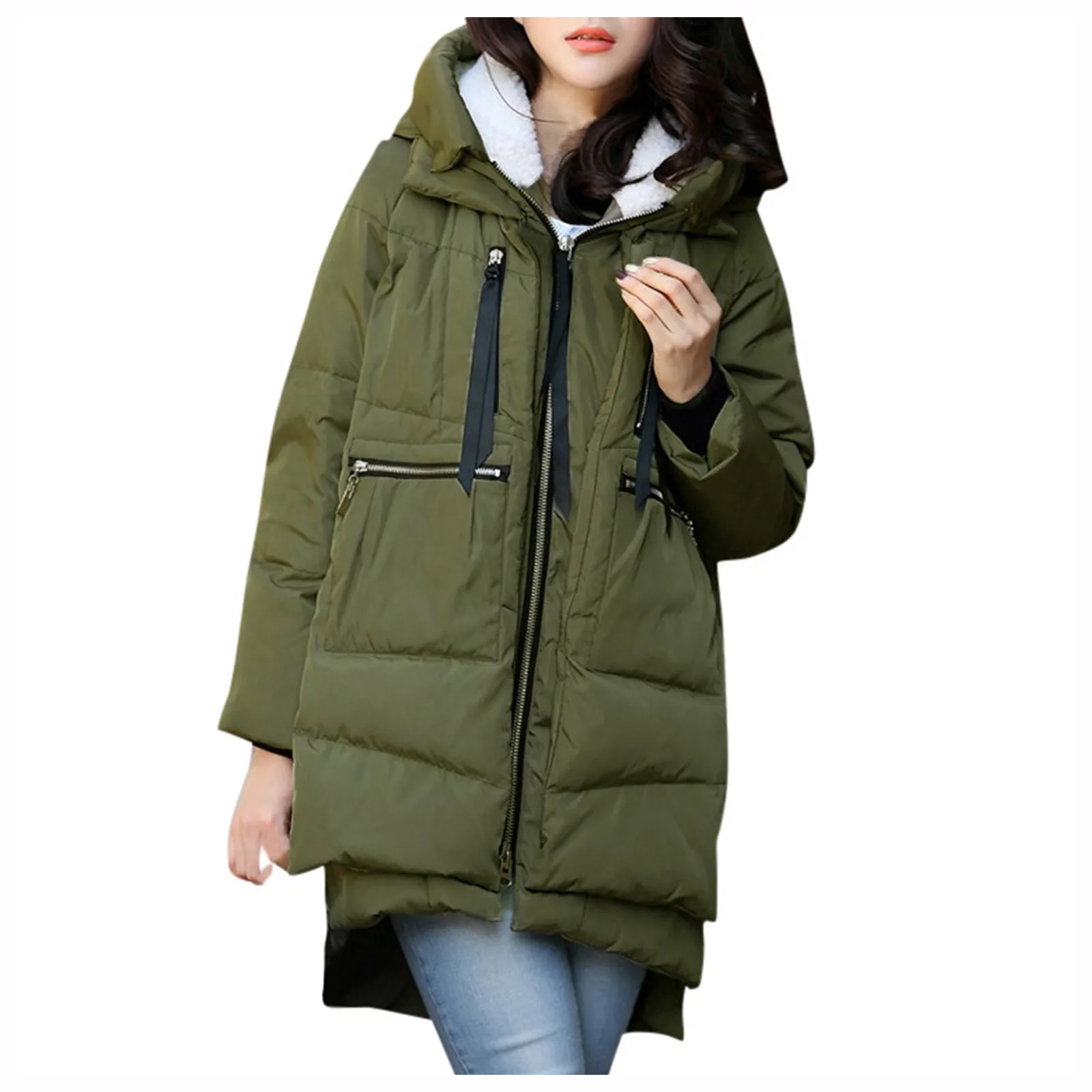 Зимнее пальто из хлопка, размера плюс, M-4xl, на молнии, с большими карманами, Женская однотонная зеленая верхняя одежда, куртки с капюшоном, утепленные пальто # T2G