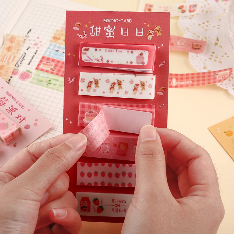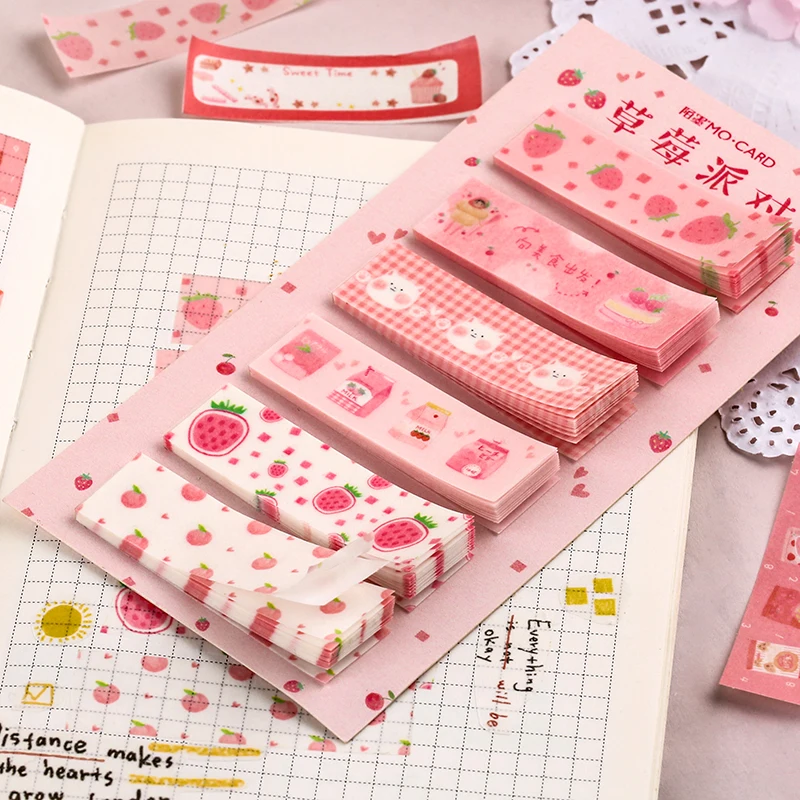 Клейкая лента на вынос с разделительной бумагой, 120, шт.упак., новые блокноты для заметок, сладкие фрукты клубники, черничные канцелярские наклейки, Стикеры