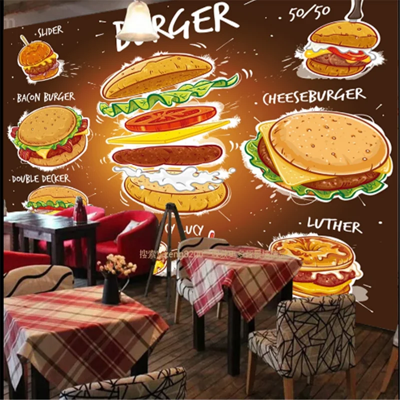 Пользовательские гамбургеры Западный фаст-фуд ресторан фон настенная бумага 3D снэк-бар пиццы промышленный Декор настенная бумага 3D