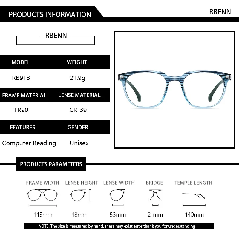 Новинка 2020, модные очки для чтения RBENN с защитой от сисветильник, женские и мужские компьютерные очки с защитой от голубого спектра и дневными линзами UV400