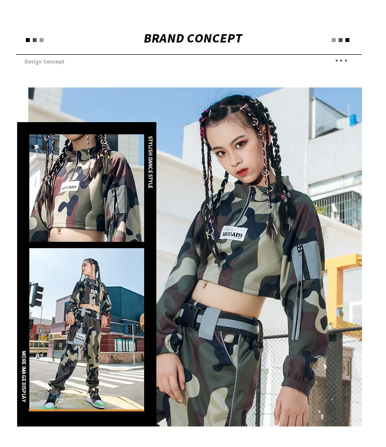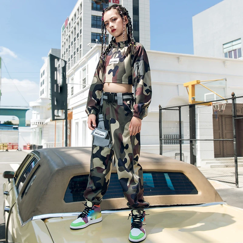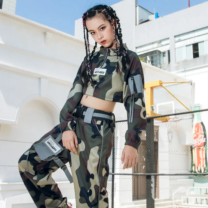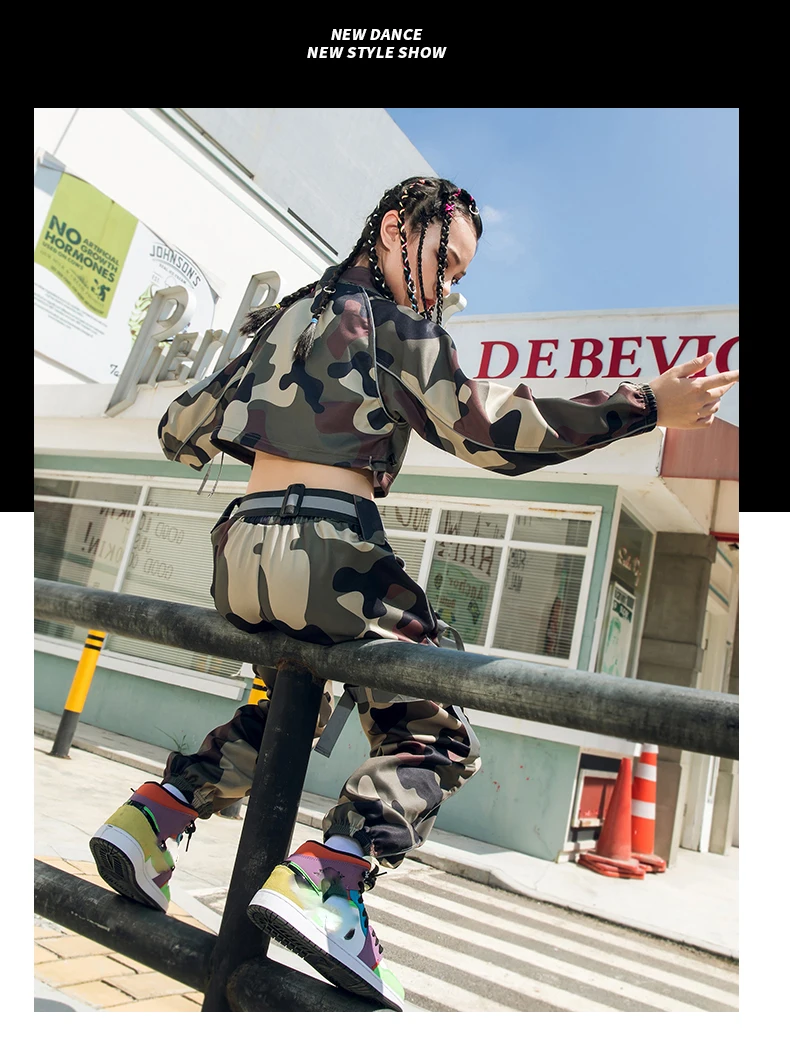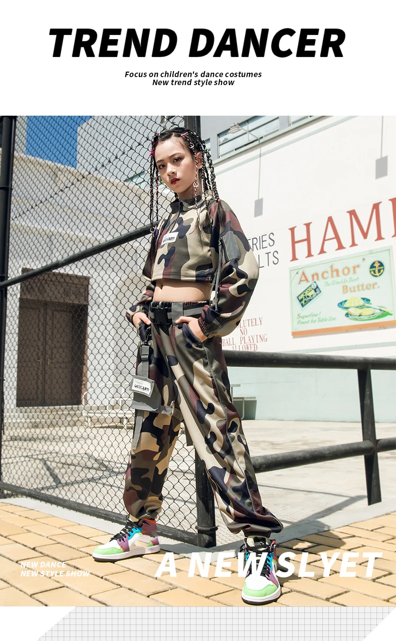 Новинка 2021, танцевальная одежда в стиле хип-хоп для детей, камуфляжный костюм для девочек, тренировочные джазовые танцевальные костюмы, уличная танцевальная одежда DN6758