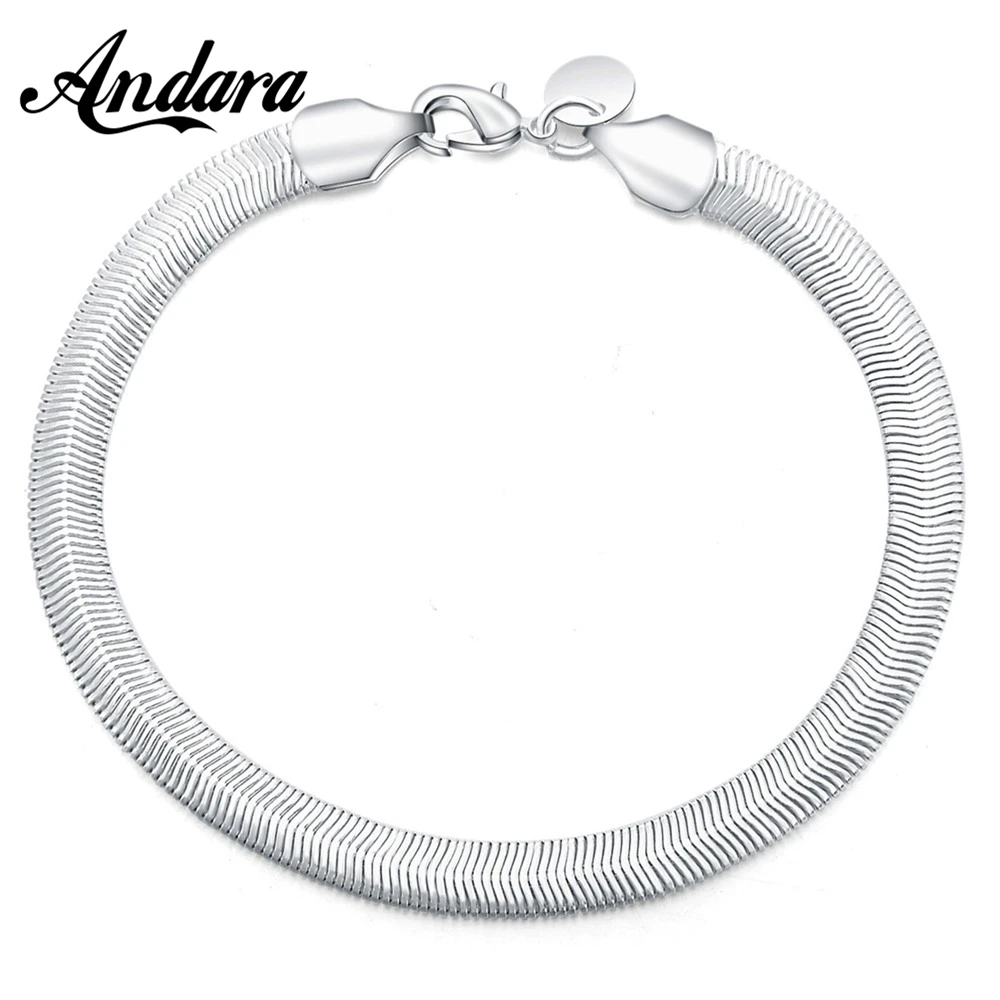 Модный серебряный браслет из стерлингового серебра 925 пробы, браслет из змеиной кости, очаровательный женский и мужской серебряный браслет-цепочка