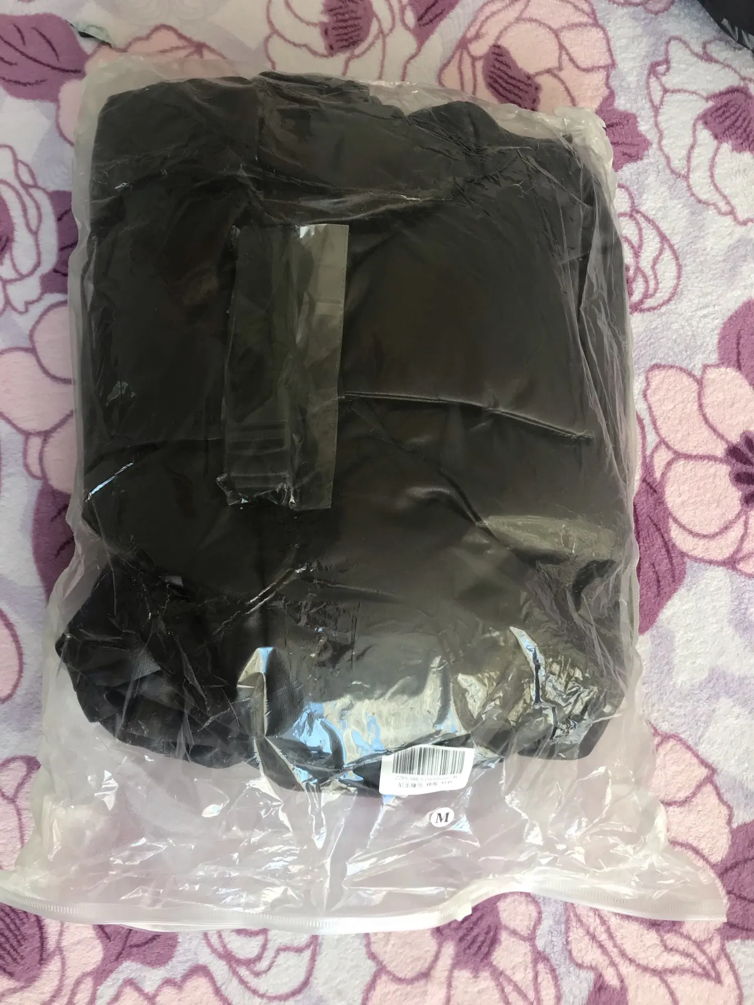 Шло больше месяца,продавец написал из за пандемии .Наполнителя маловато ,внизу как и вообще нет,думала будет пухлее .Запаха нет,сама эко кожа хорошая.Ношу обычно s,взяла М для оверсайза.Рукав прям длинный на рост 166.