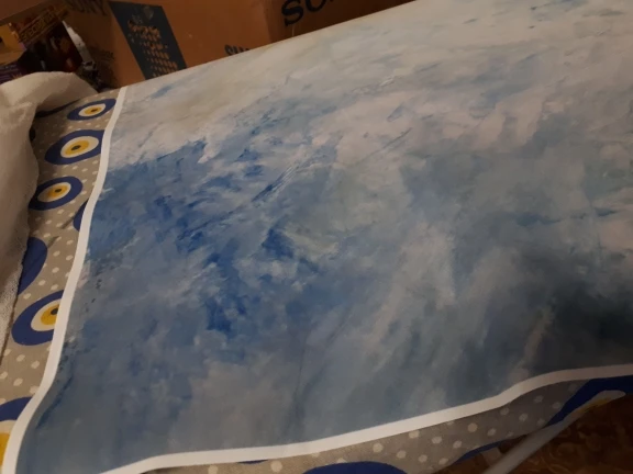 Заказала 10.08.2021 пришло в Украину 27.08.2021. Хороший виниловый фон.Был сложен, гладила утюгом без пары (парой можна испортить) на невысокой температуре, розгладился нормально.Спасибо!!!