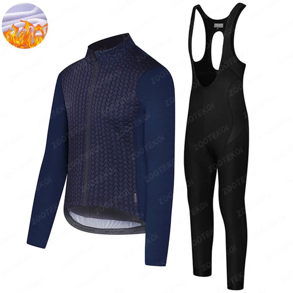 Мужская зимняя одежда для велоспорта с длинным рукавом и флисовой п...
