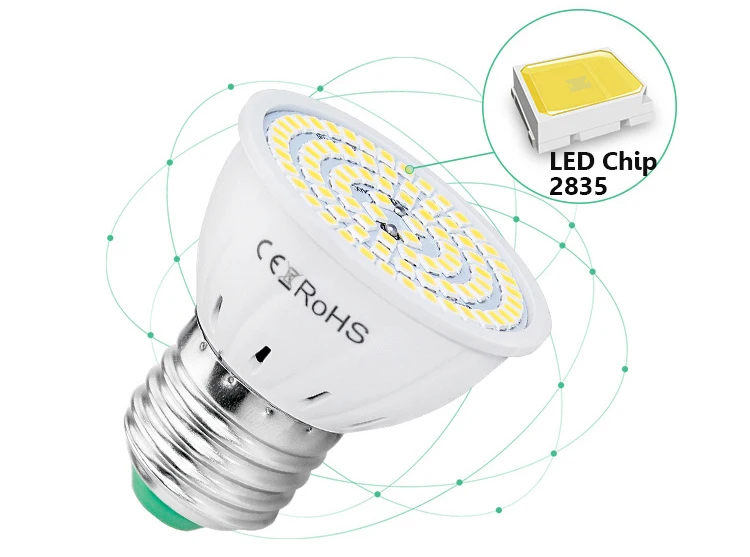 Лампа светодиодная GU10 E27 220 В MR16 E14 48 60 80LED s B22 2835, ...