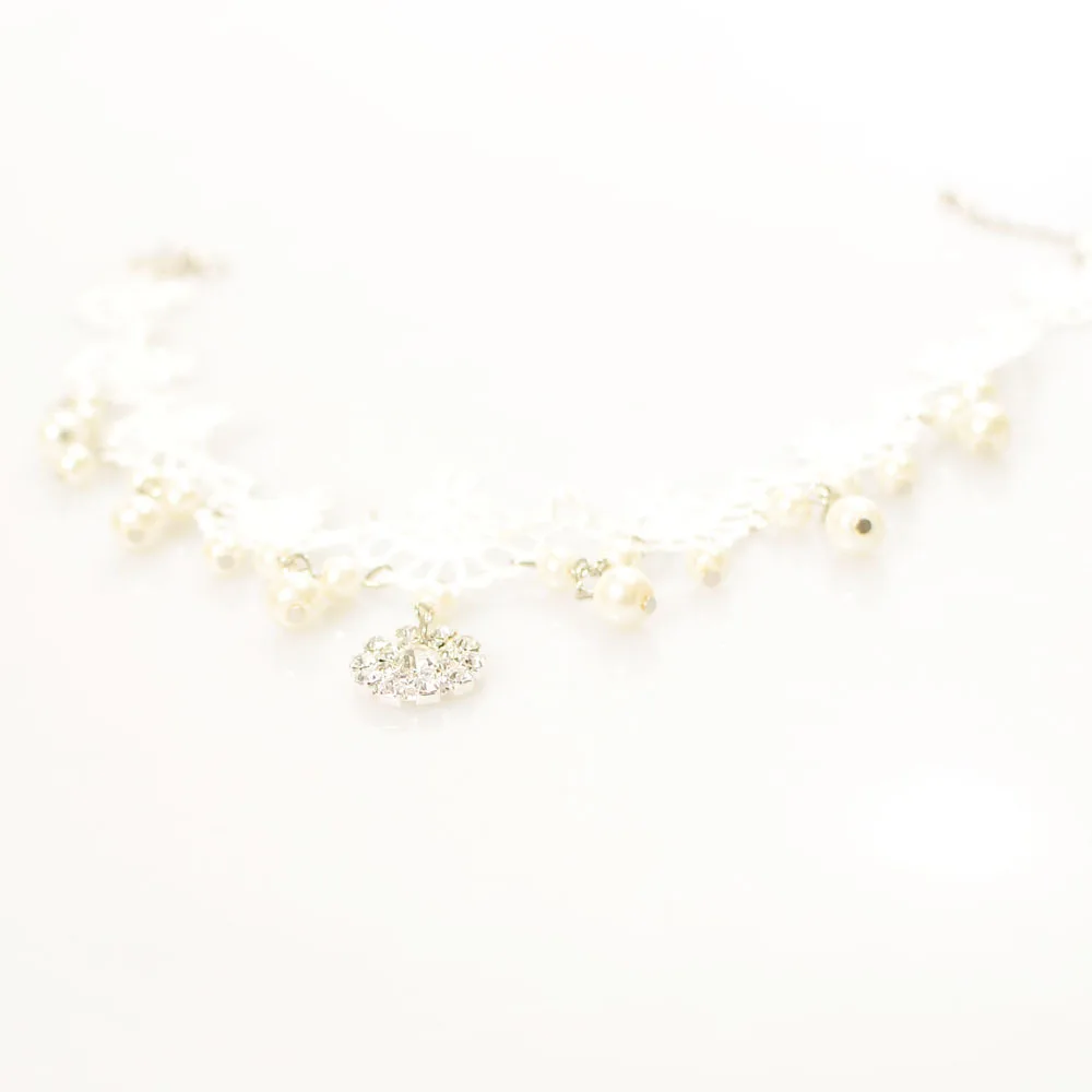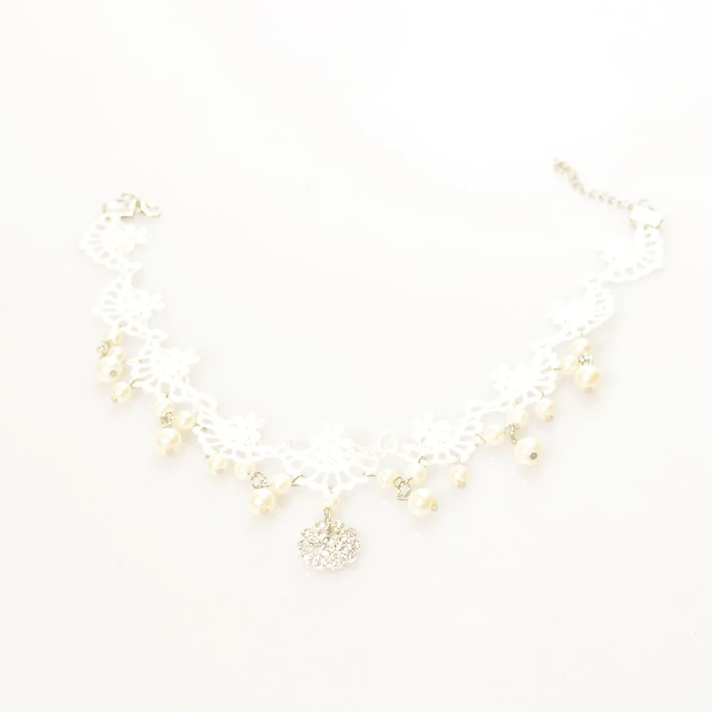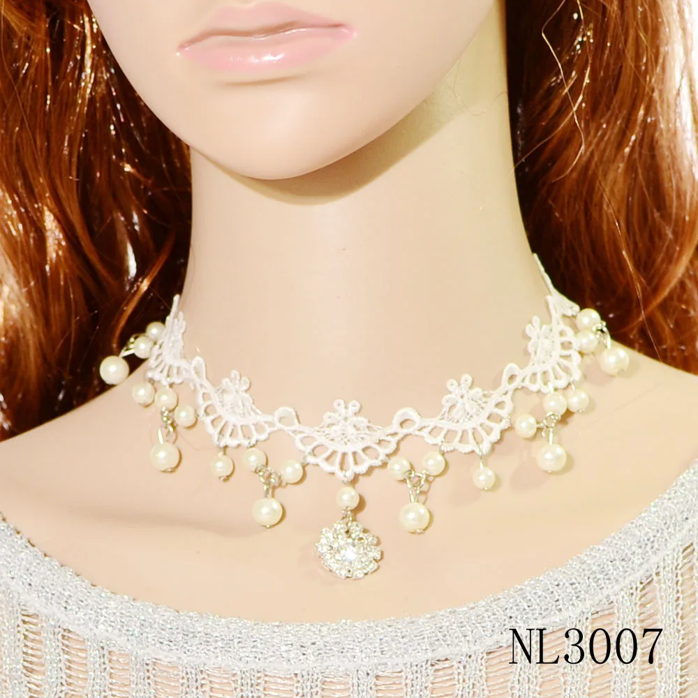 Модный белый кружевной цветок жемчуг с бусинами, подвеска-чокер, ожерелье для женщин, стеклянный кристалл, эффектные готические ювелирные изделия