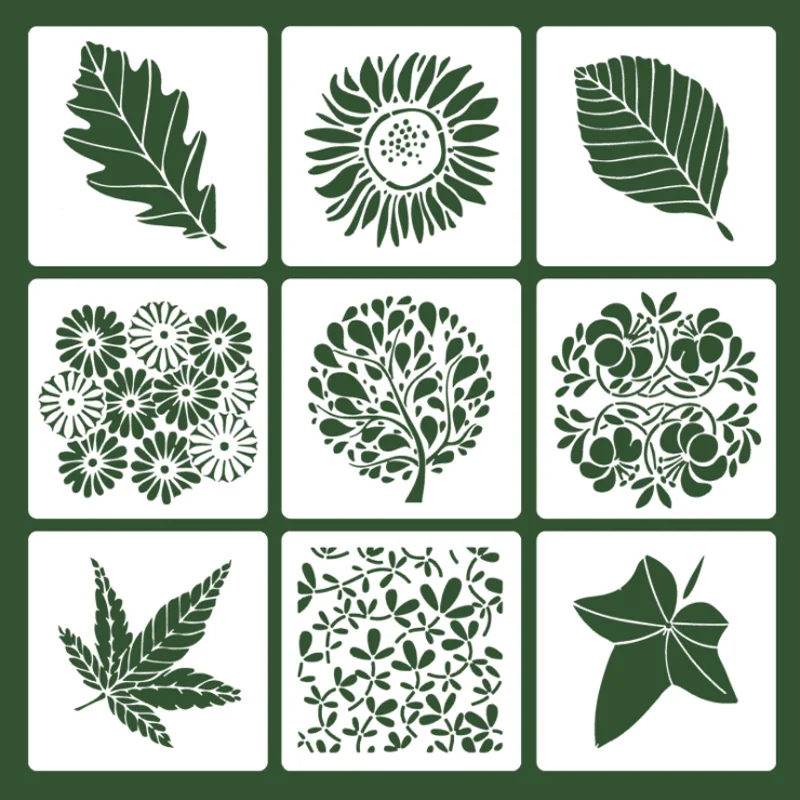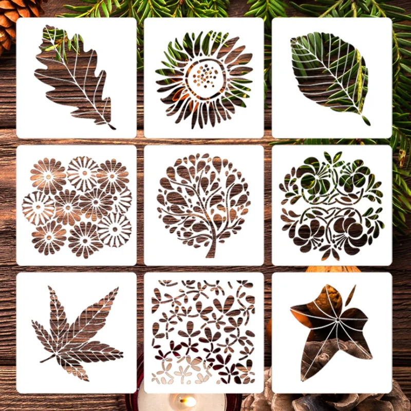 9 шт. трафареты с листьями и цветами, шаблон для рисования, сделай сам, стена, скрапбукинг, фотоальбом, тиснение, граффити, рисование, офисные и школьные принадлежности