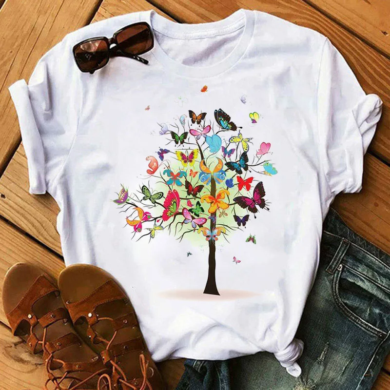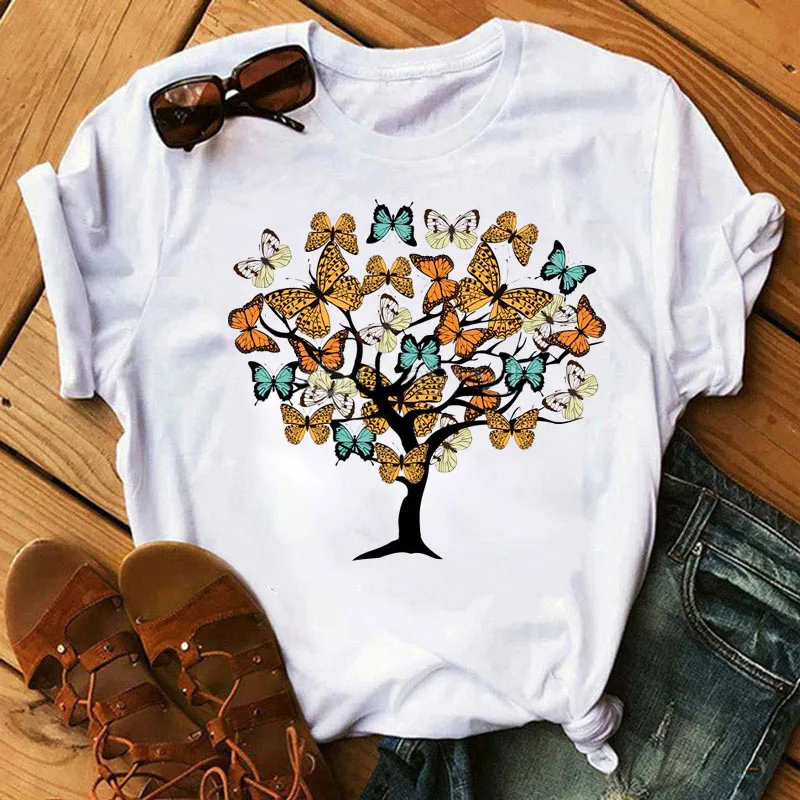 Новая модная женская футболка с принтом бабочки дерева, женская лет...