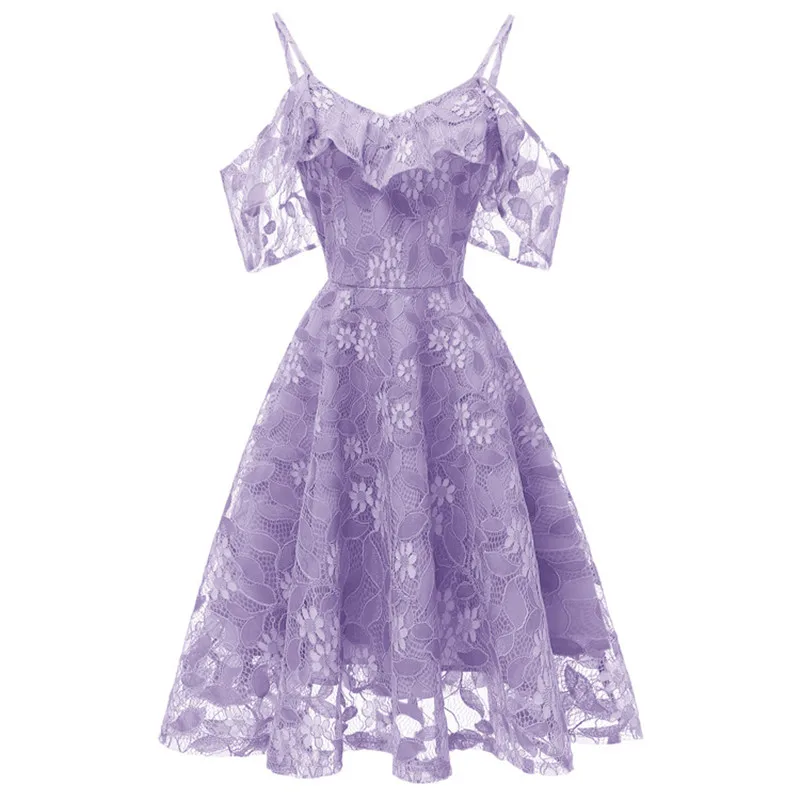 Вечерние платья CD-1627 #, короткое Кружевное ТРАПЕЦИЕВИДНОЕ ПЛАТЬЕ С V-образным вырезом и вышивкой, с открытой спиной, на бретелях, Красного фасона, фиолетового цвета, оптовая продажа