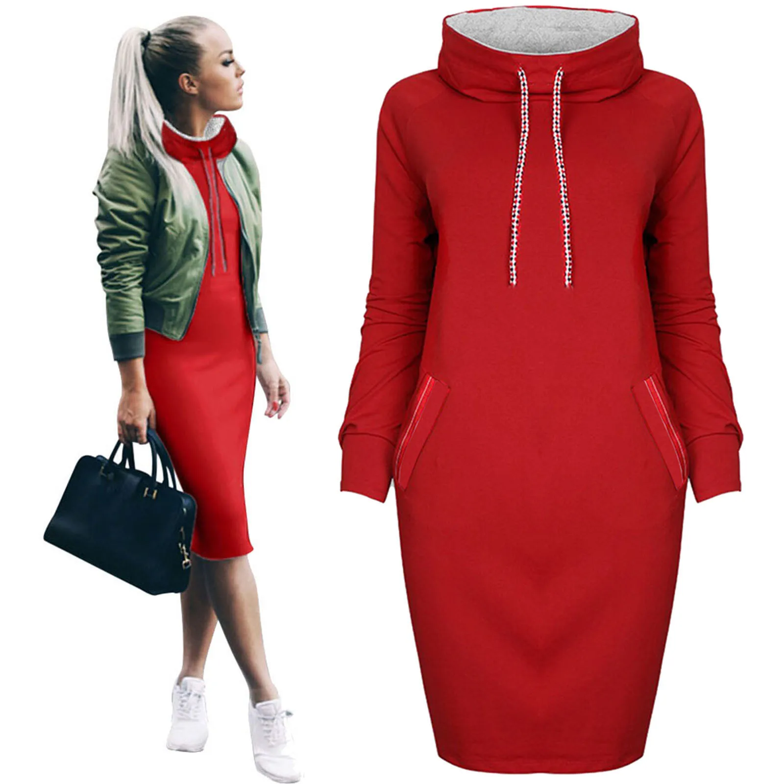 40 # женская зимняя теплая верхняя одежда с капюшоном, наряды Зима Повседневная кофты платье с мини-юбкой и длинным рукавом Толстовка платье размера плюс