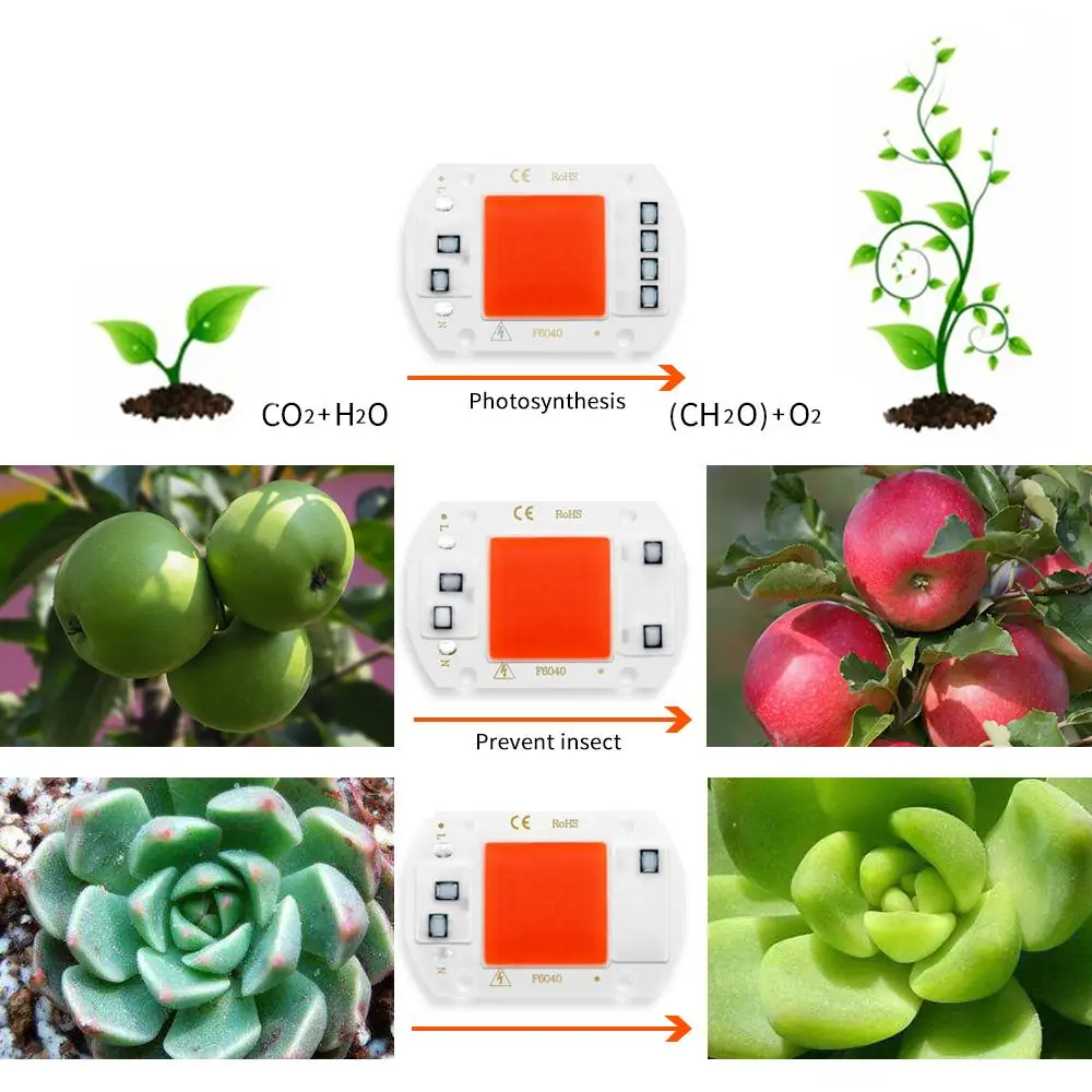 Светодиодные чипы с Cob матрицей, лампа полного спектра для выращивания растений, не требует драйвера, Диод для прожектора сделай сам, 220 В, 20 Вт, 30 Вт, 50 Вт