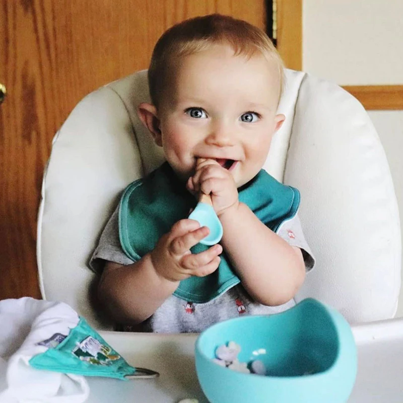 Силиконовая миска для кормления ребенка, деревянная ложка в комплекте, Детская обеденная тарелка, чаша на присоске, нескользящий Набор для кормления ребенка, столовая посуда, посуда, не содержит Бисфенол А