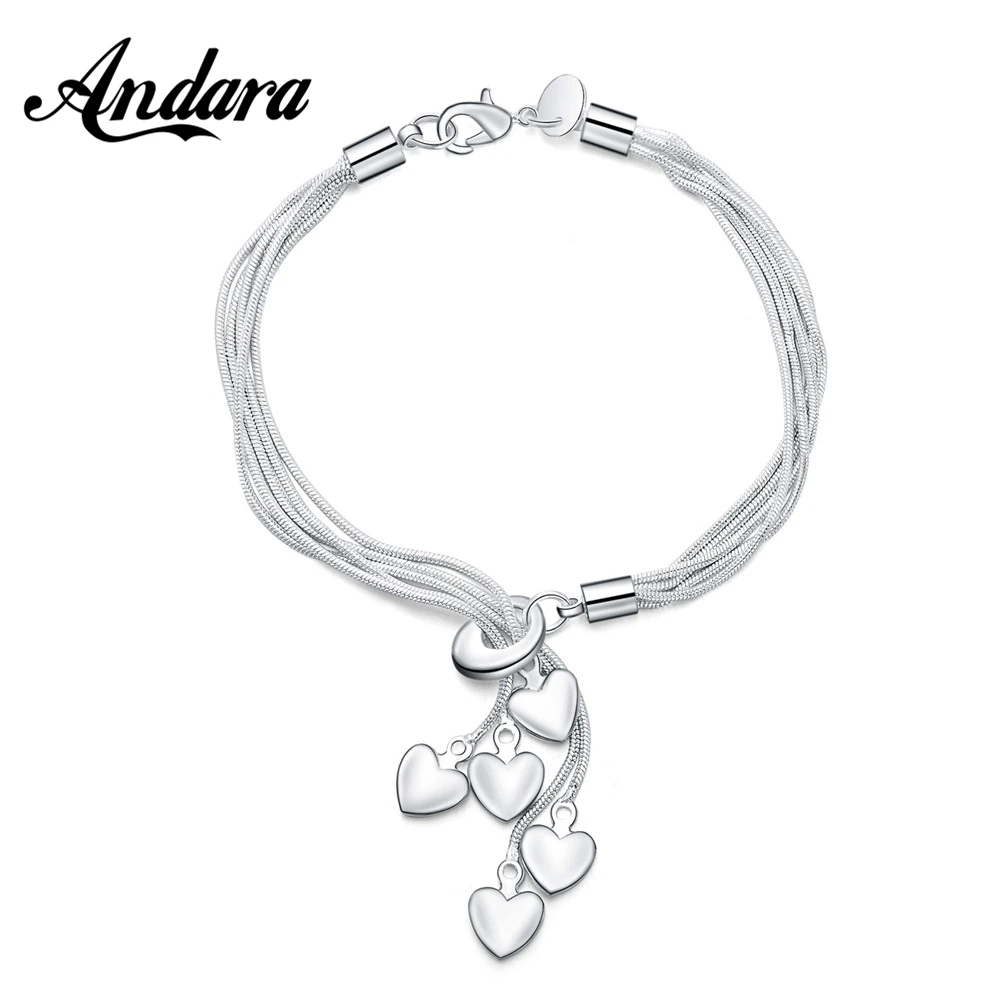 2020 Горячая 925 стерлингового серебра браслет крюк пять сердца Выс...