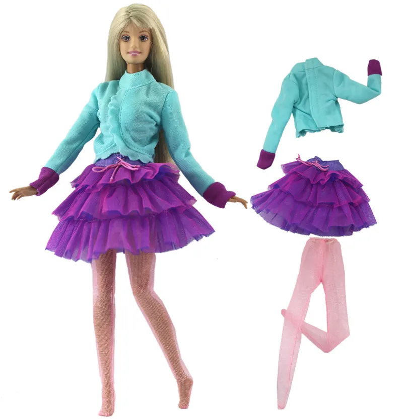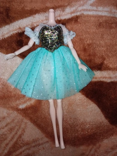 Комплект красивый. Но мне пришёл без колготок, не много расстроилась. Качество хорошее, смотрится очень красиво. Подходит для Барби 90х. Получила в течении 2х недель.