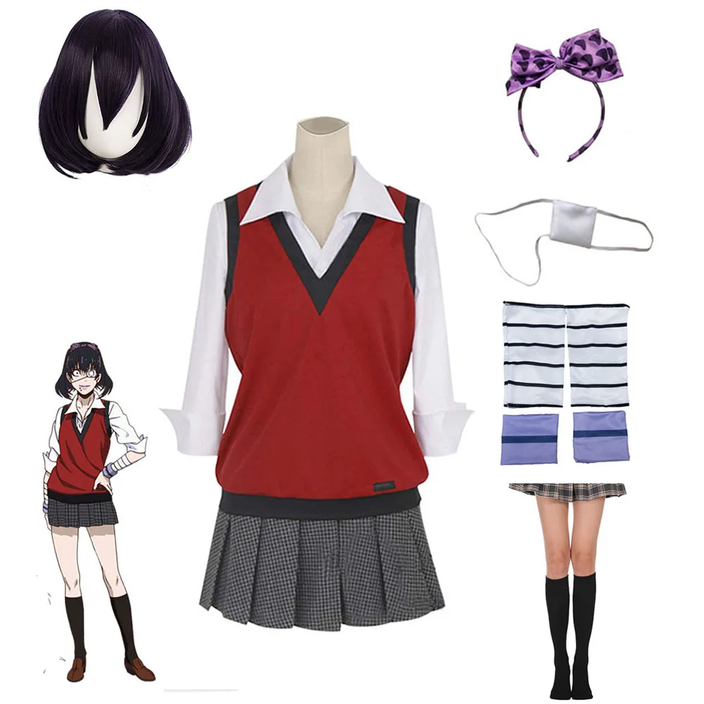 Костюм для косплея MeetLife Ikishima Midari, костюм из аниме какегуруи для косплея, парик, топ, юбка, комплект, Униформа, повязка на голову, носки