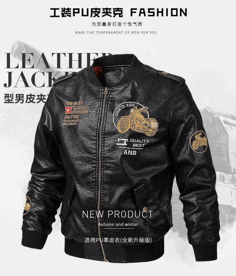 Мужские кожаные куртки и пальто, Мужская мотоциклетная флисовая кож...