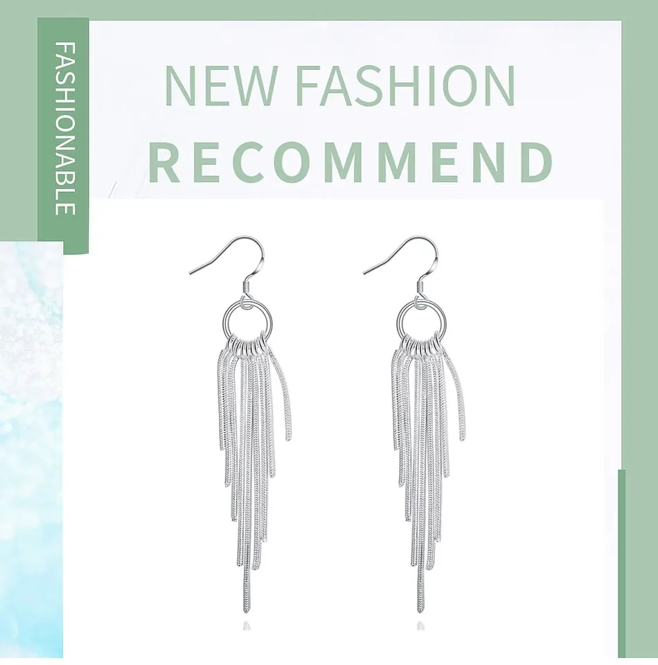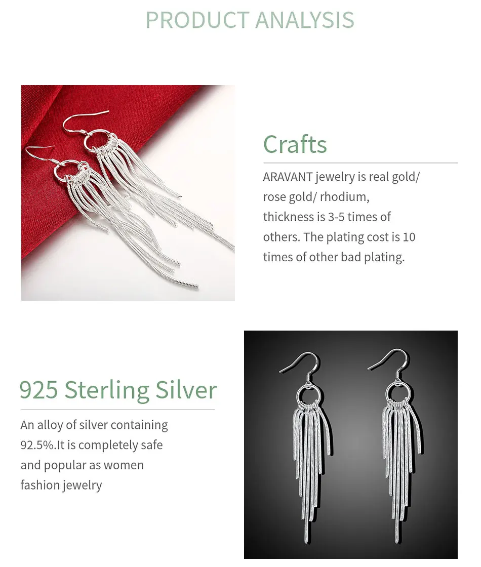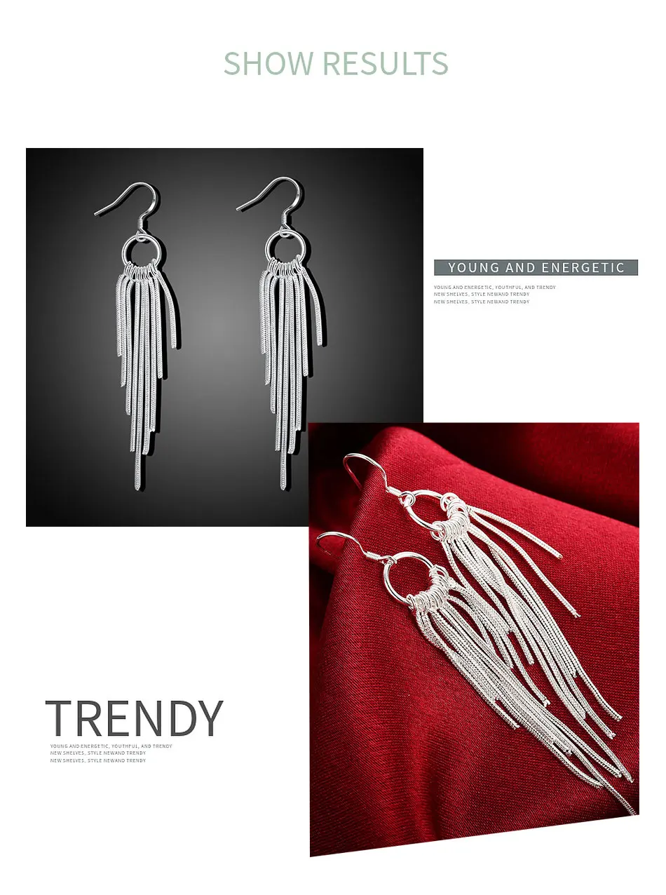 925 Серебряные длинные висячие серьги с кисточкой для женщин Свадебные ювелирные изделия