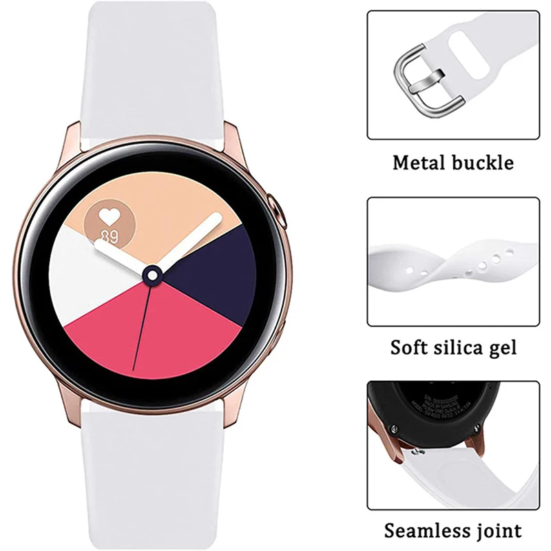О товаре【Совместимость 】 специальный силиконовый спортивный ремешок для Samsung Galaxy Watch active【Высокое качество 】изготовлен из мягкого и прочного экологически чистого силикона, удобный и прочный для хорошего ощущения рук.【MULTI choices】различные цвета для вас на выбор, Персонализируйте ваши часы Samsung Galaxy active, чтобы соответствовать вашему настроению и одежде в повседневной жизни, оденьте ваши часы Samsung Galaxy active и выделите свой уникальный вкус.