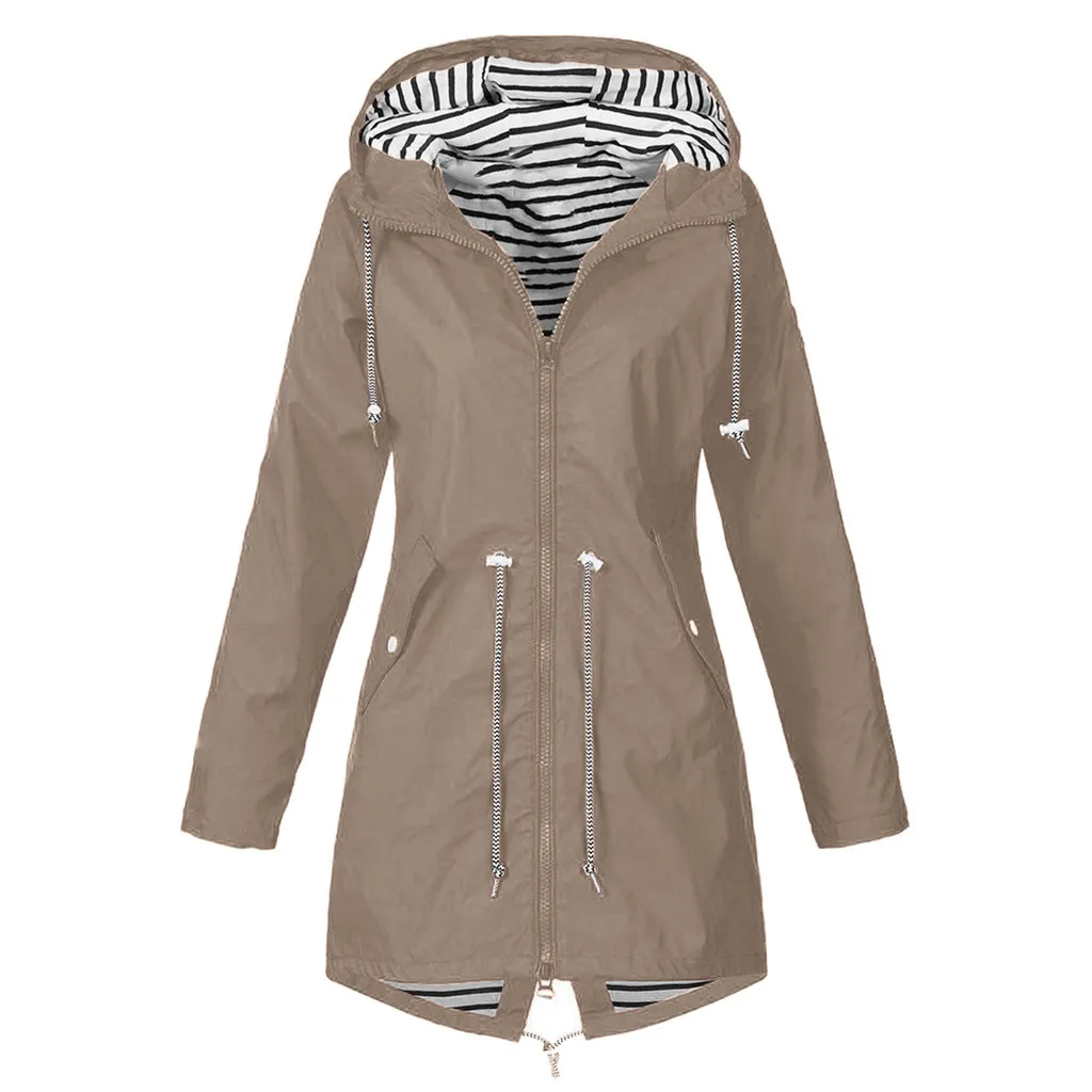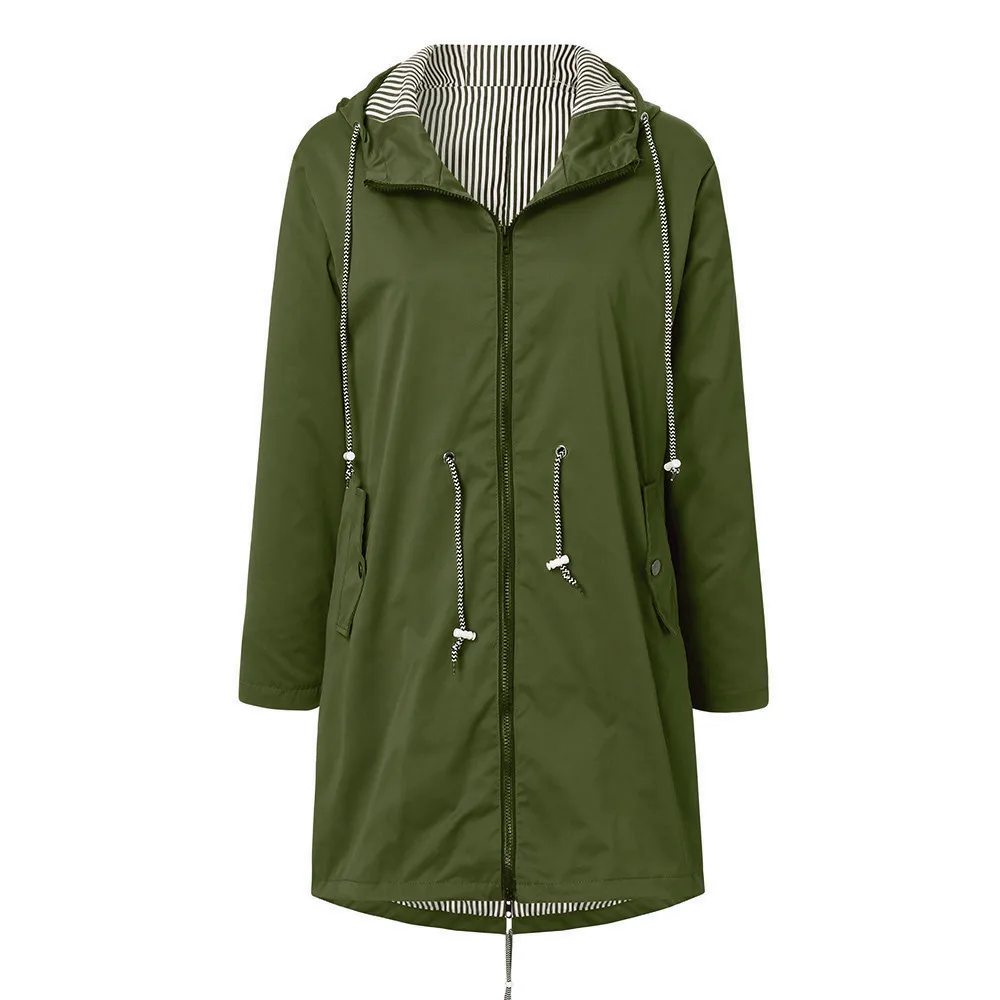 Женская однотонная куртка от дождя, водонепроницаемое ветрозащитное Свободное пальто с капюшоном, размера плюс