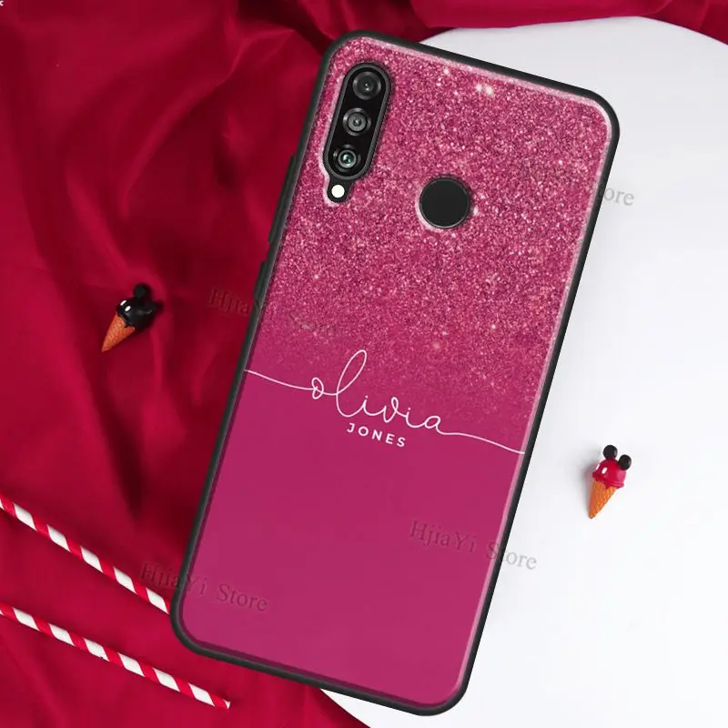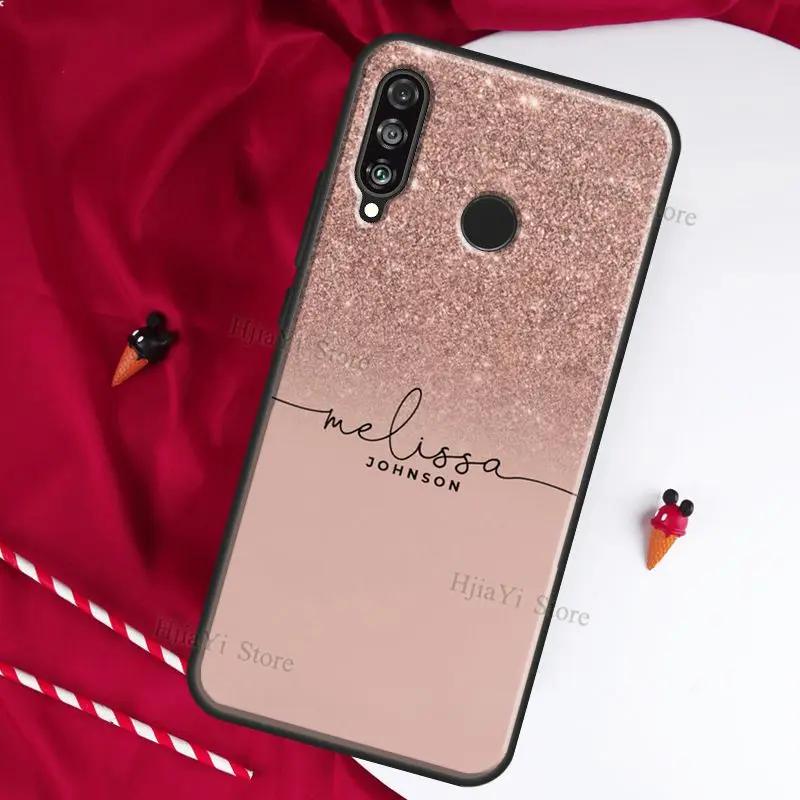 Чехол для Huawei P20 Lite, P10, P40, P30 Pro, P Smart 2019 Z, Mate 20, 10 Lite, с персонализированными инициалами, блестящий