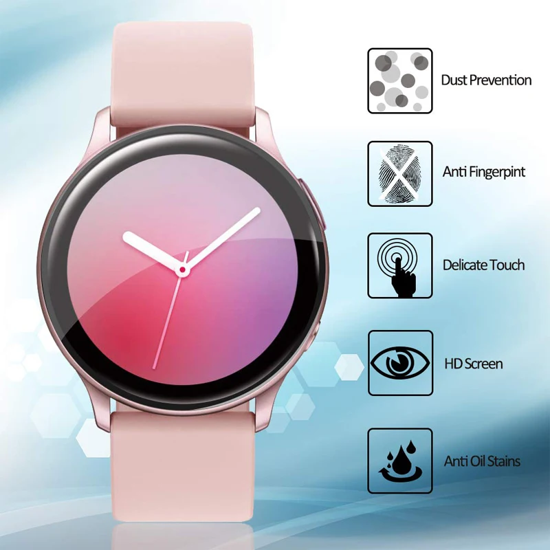 Уникальный дизайн: специальный дизайн для 2019 новых Samsung Galaxy Watch Active (40 мм). Не совместим с другими моделями. Советы: Это мягкие пленки, а не Защитные пленки из закаленного стекла. Высокое качество: эти защитные пленки для Samsung galaxy watch active изготовлены из высококачественных гибких материалов. Использование революционного процесса, который сливает высокую чувствительность к отклику, самовосстанавливающуюся долговечность и не пожелтение, оптическую прозрачность в один слой гибкой, но жесткой пленки. Без пузырей. Кристально чистый: клейкая поверхность мягкой защитной крышки хорошо сработала, после нанесения не осталось пузырьков. При установке было легко избавиться от пузырьков, и он поместился как влитой. Чувствительное прикосновение: никак не препятствует использованию смарт-часов galaxy watch active, вы можете легко провести по экранам без проблем. Прикосновение к дисплею для управления вещами, такими как пролистывание меню или изменение музыкальных треков, работало так же, как и с открытым экраном. Сохранители защитной пленки на самом деле выглядят так, будто они являются частью фитнес-трекера. Простота установки: защитная крышка EZCO для galaxy watch active невероятно проста в установке. Чехол для активного экрана Galaxy watch имеет закругленные края, благодаря чему он остается лучше, легко удаляется с грязи и отпечатков пальцев и не темнеет, делая его отслаивающимся.