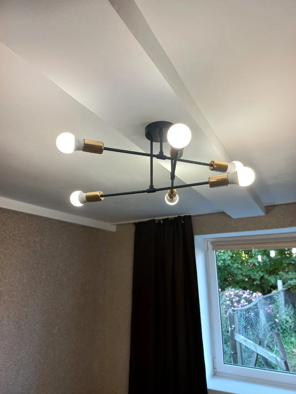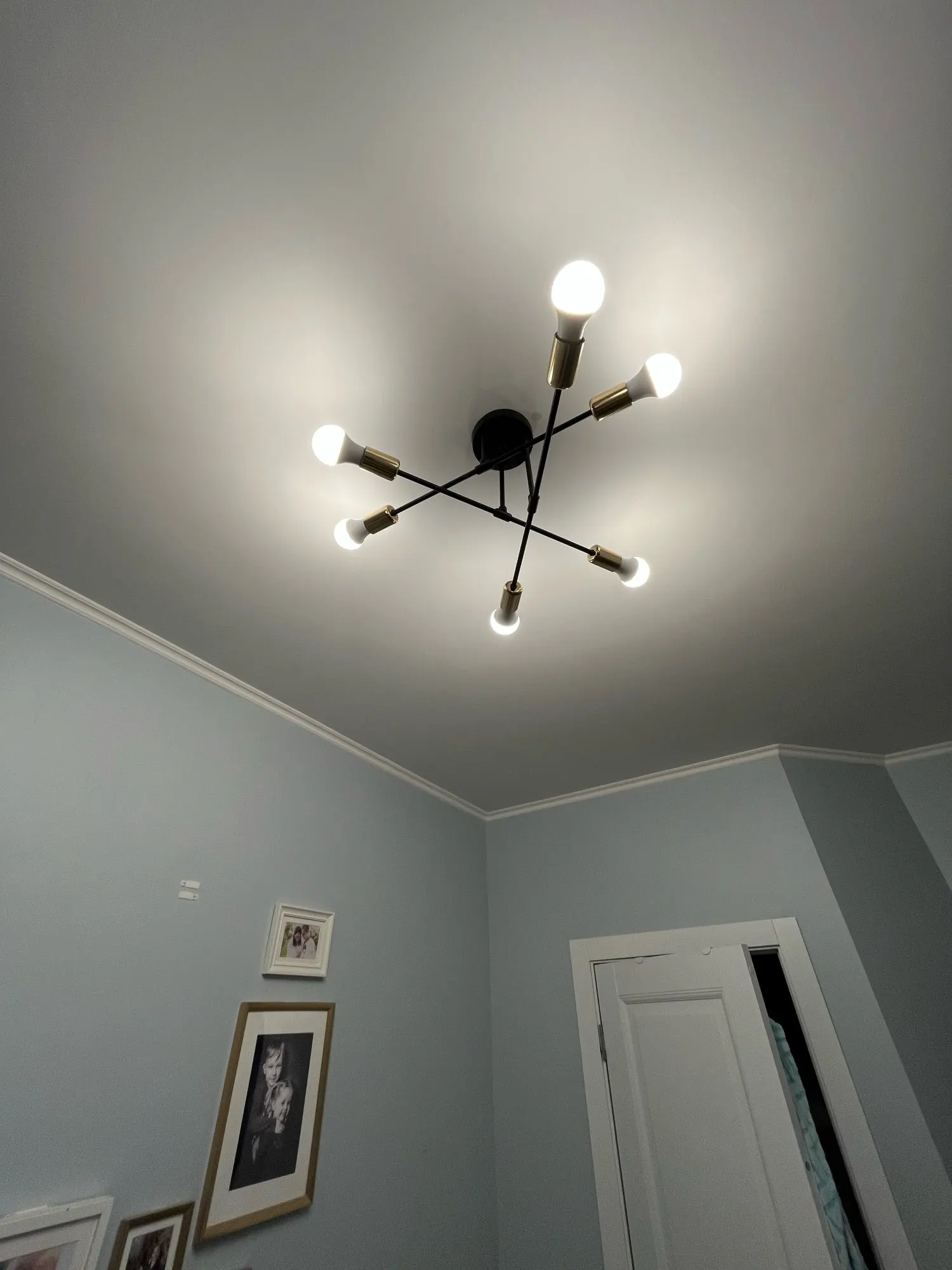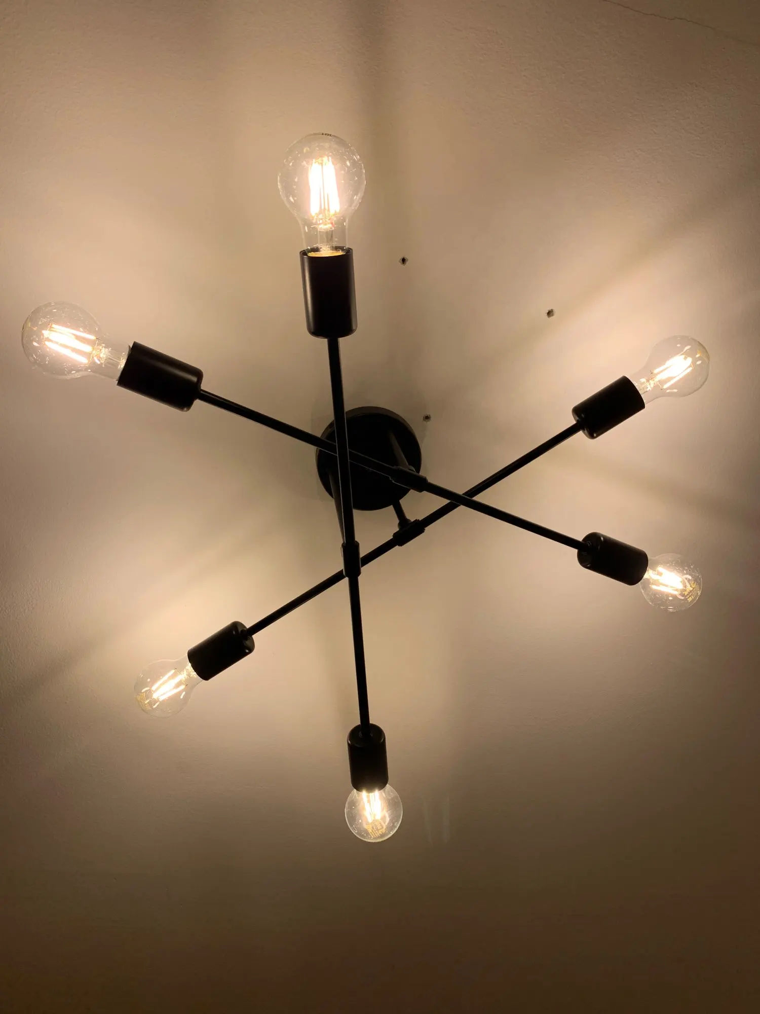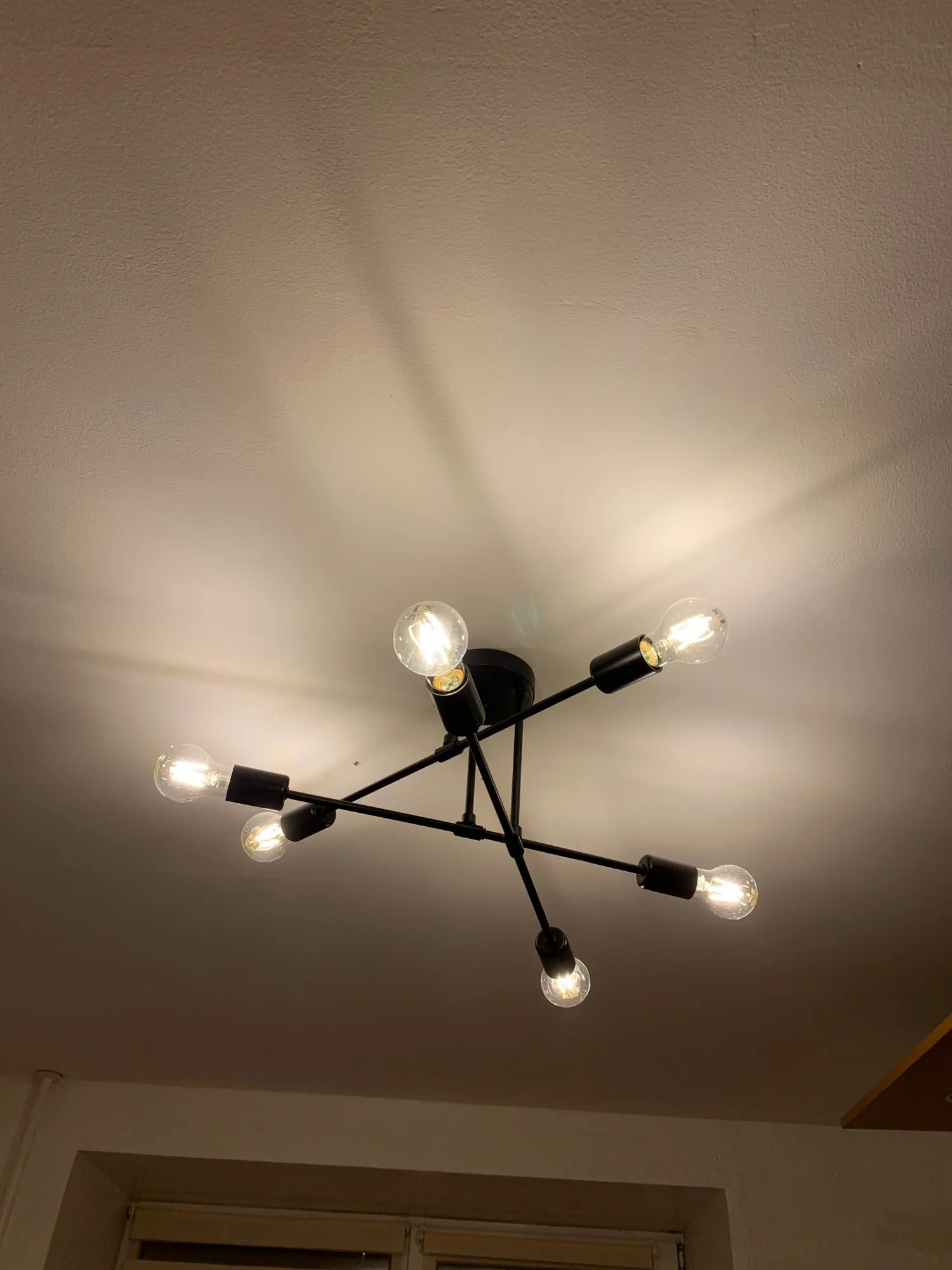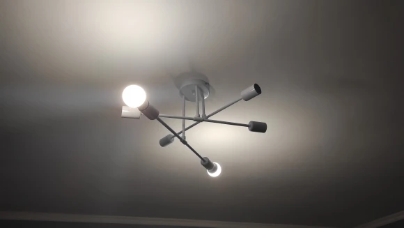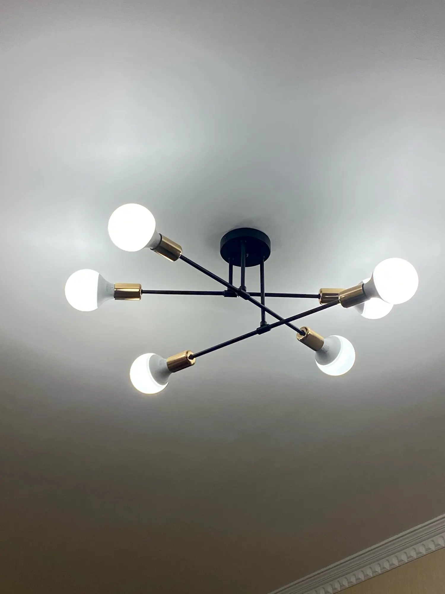 Люстра отличная, минималистичная. То, что мне нужно было. Осталось купить красивые лампочки. Собирается легко, 5 минут и все готово. Для спальни в 15 кв.м. ее достаточно, даже слишком ярко)) продавец молодец