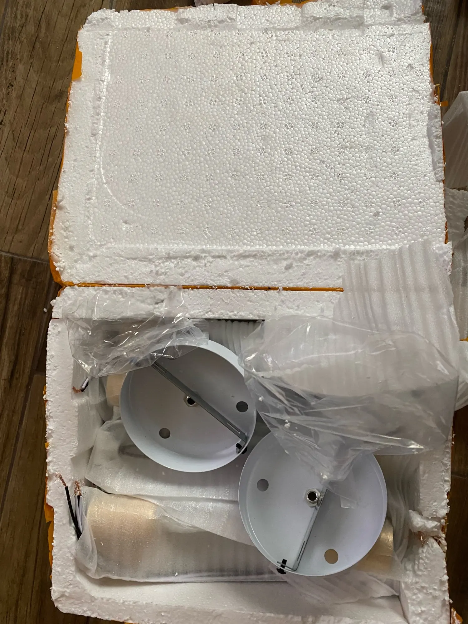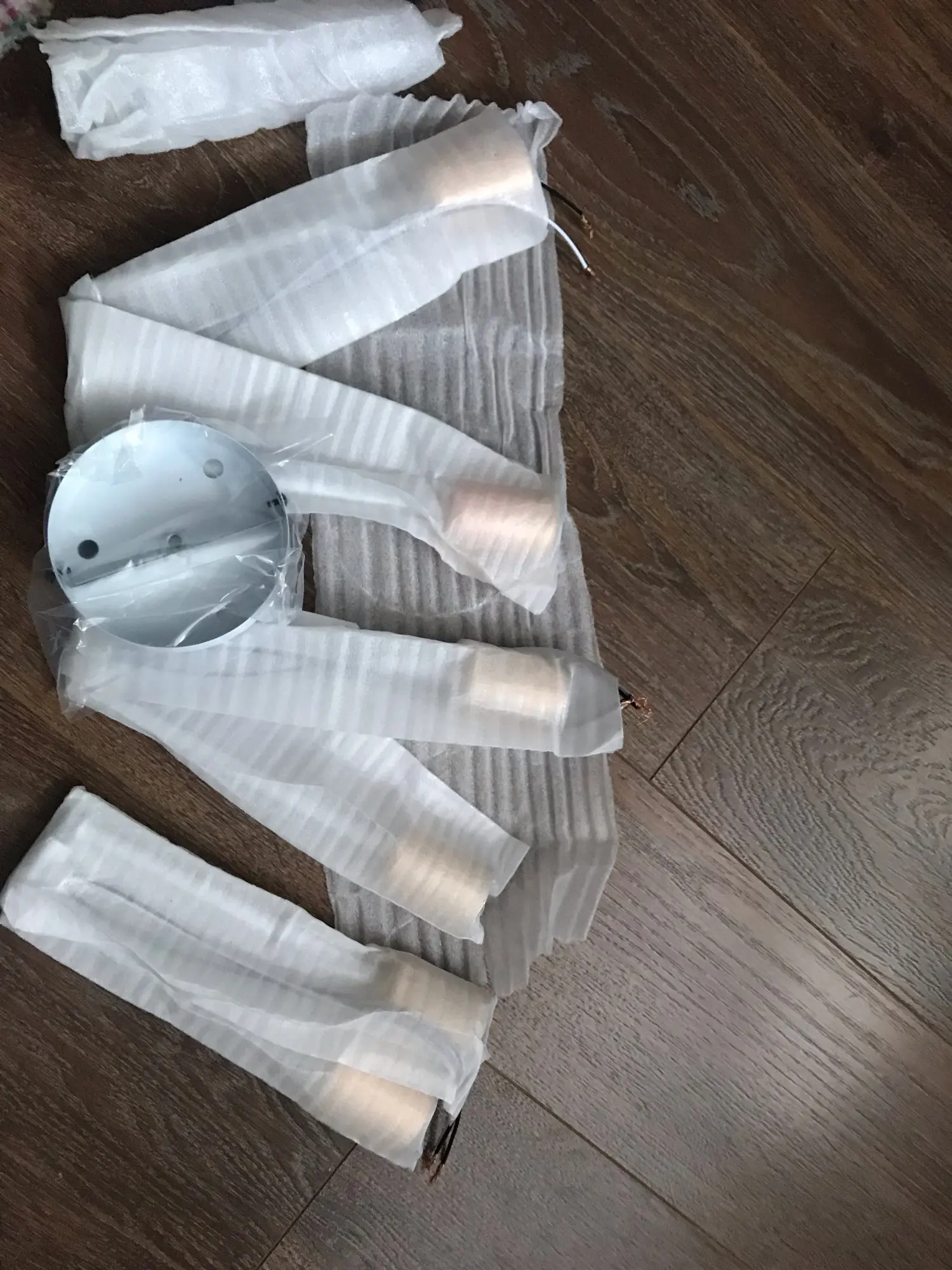 шел заказ 2,5 недели, внутри все хорошо упаковано, целое. я думала это плафон, оказывается это такие лампочки, которые не идут в комплекте. инструкции по сборке нет, но сборка простая