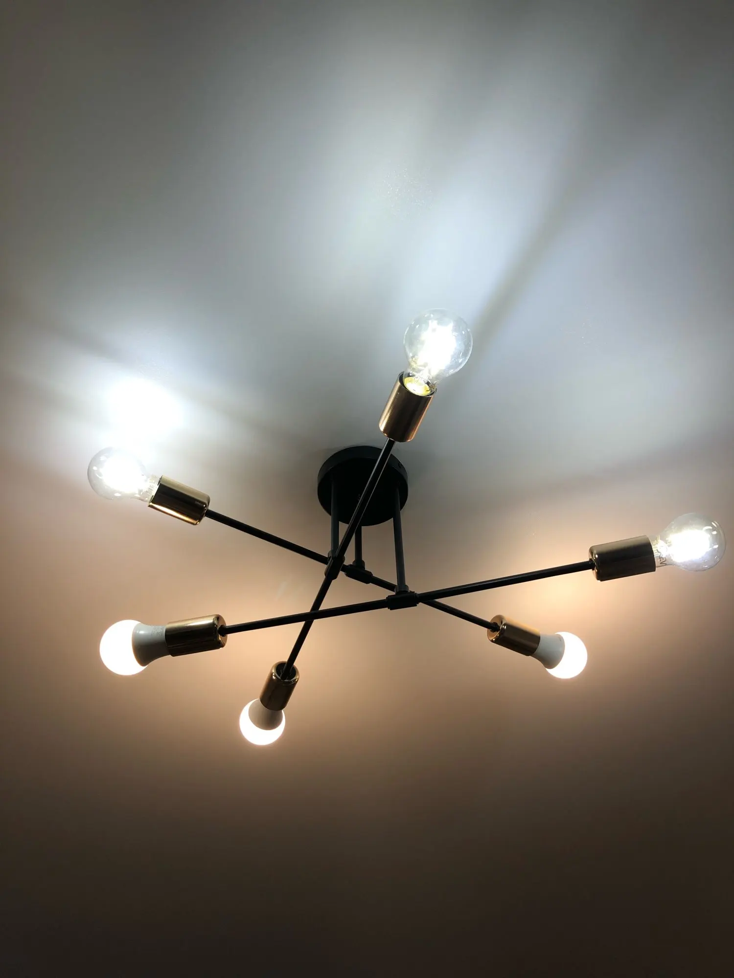 Хорошая люстра,легкая в сборке.Актуально смотрится в простом базовом ремонте.Нужно брать лампочки меньшей мощности,я погорячилась!