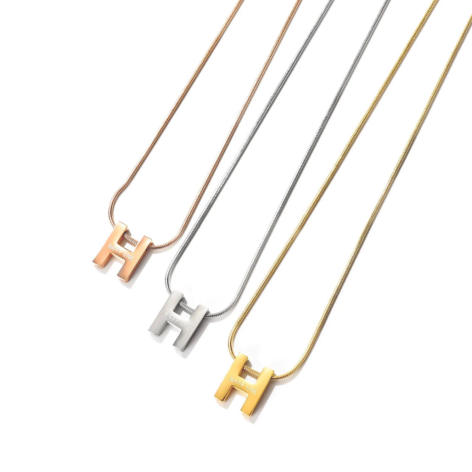 Простое Ожерелье с надписью Happy Girl, подвеска из нержавеющей стали, цвета розового золота, очаровательные ювелирные изделия для девочек, женский подарок