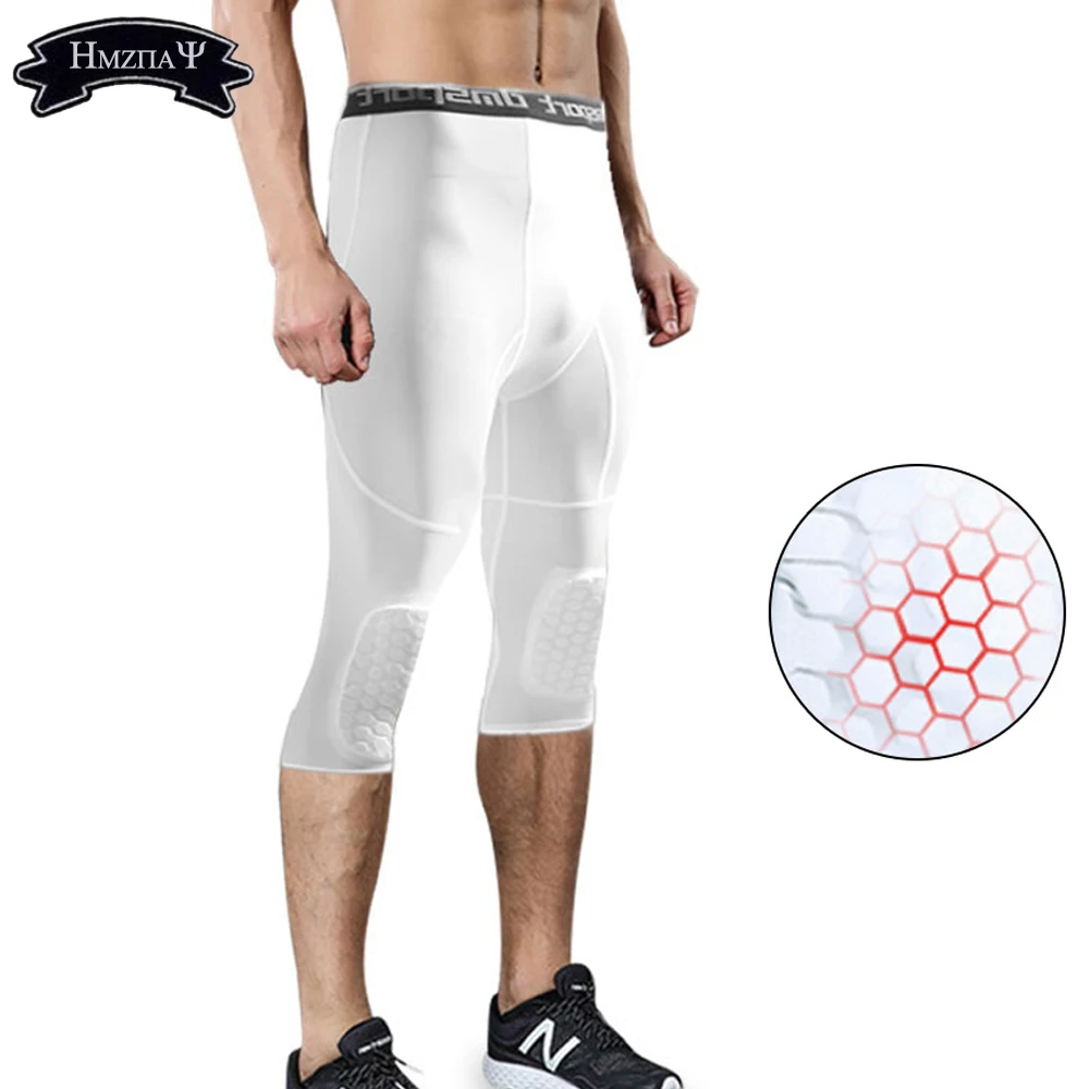 Мужские ячеистые наколенники для бега против столкновений, плотные защитные штаны для баскетбола, тренировочные леггинсы 34, спортивные компрессионные штаны