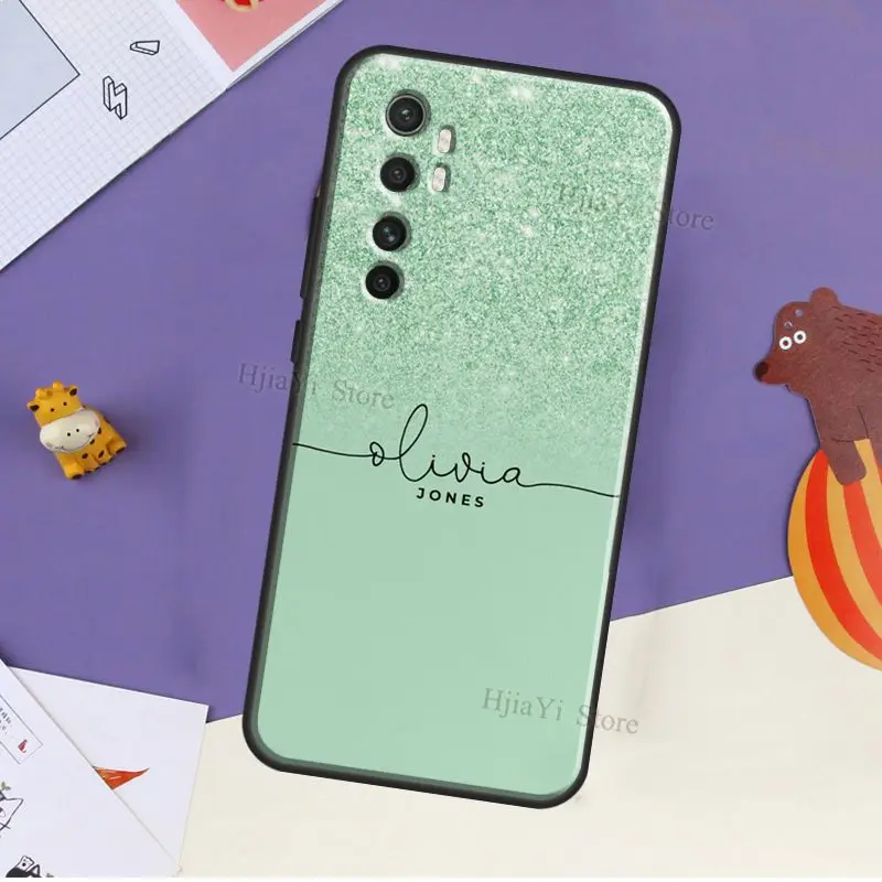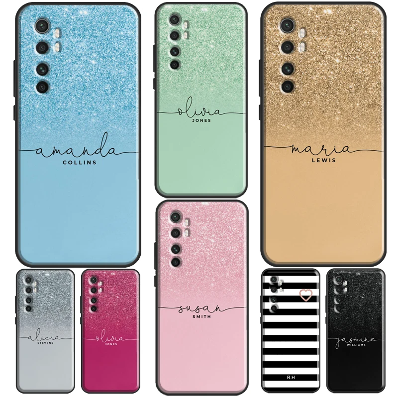 Персонализированные с инициалами насквозь блеск имя для POCO X3 Pro M3 F2 F3 чехол для Xiaomi Mi 11 ультра 9T 10T Pro A3 Mi Note 10 Lite чехол