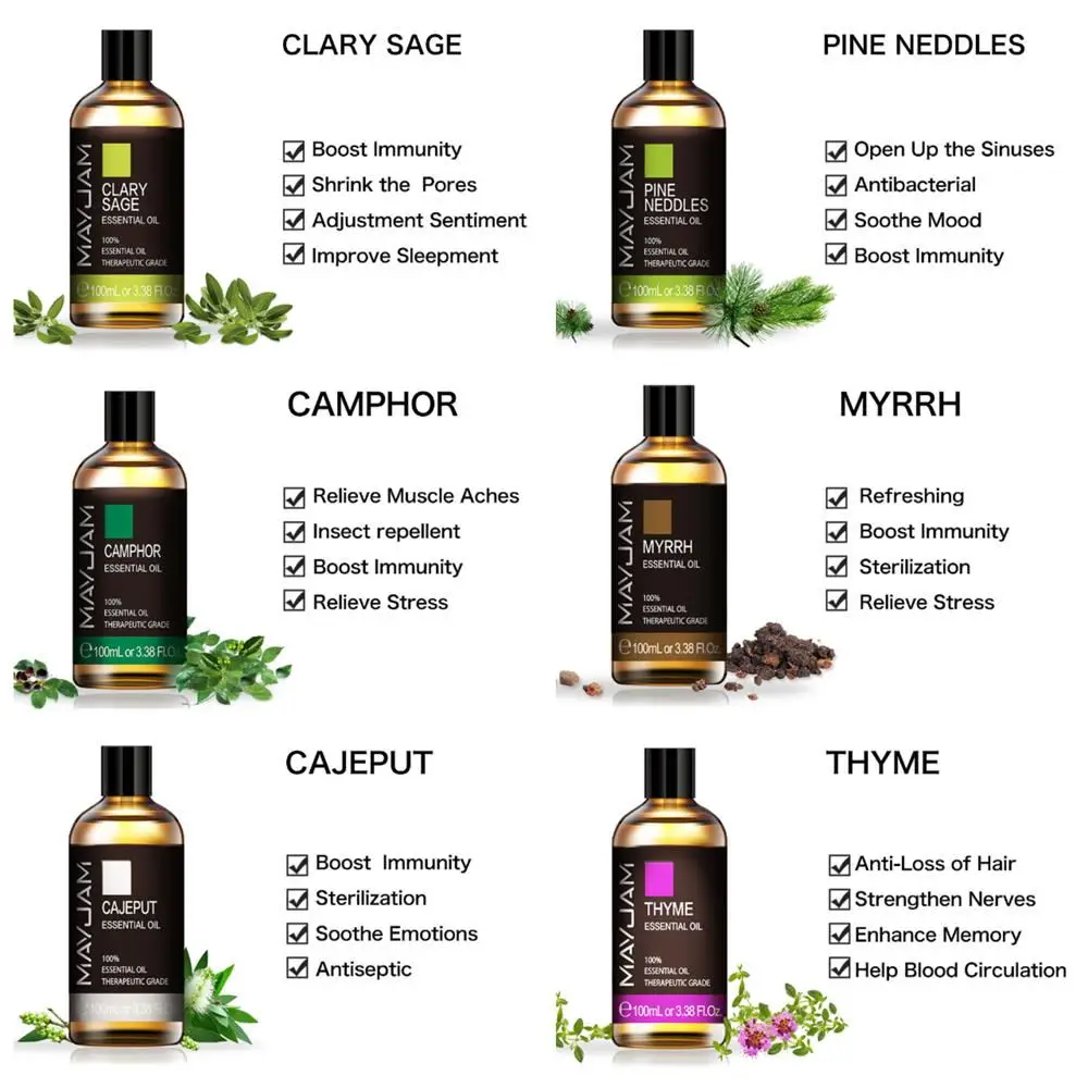 100 мл чистые натуральные эфирные масла имбирь камфора сосновая лужа Мирра Фенхель базилик кипарис Тимьян можжевельник масло для массажа тела