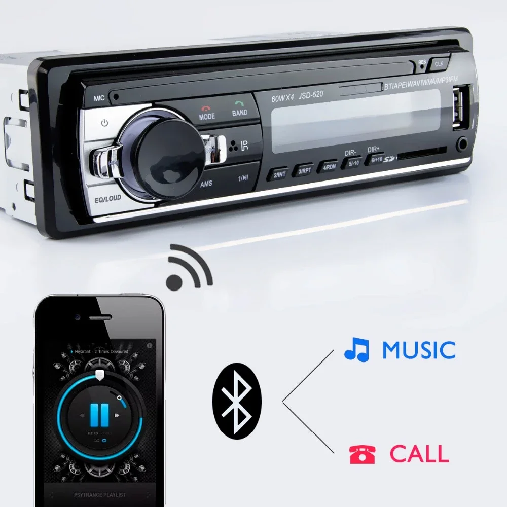 Автомагнитола Podofo, 1 din, стерео, FM, Aux вход, приемник, SD, USB, JSD-520 12 В
