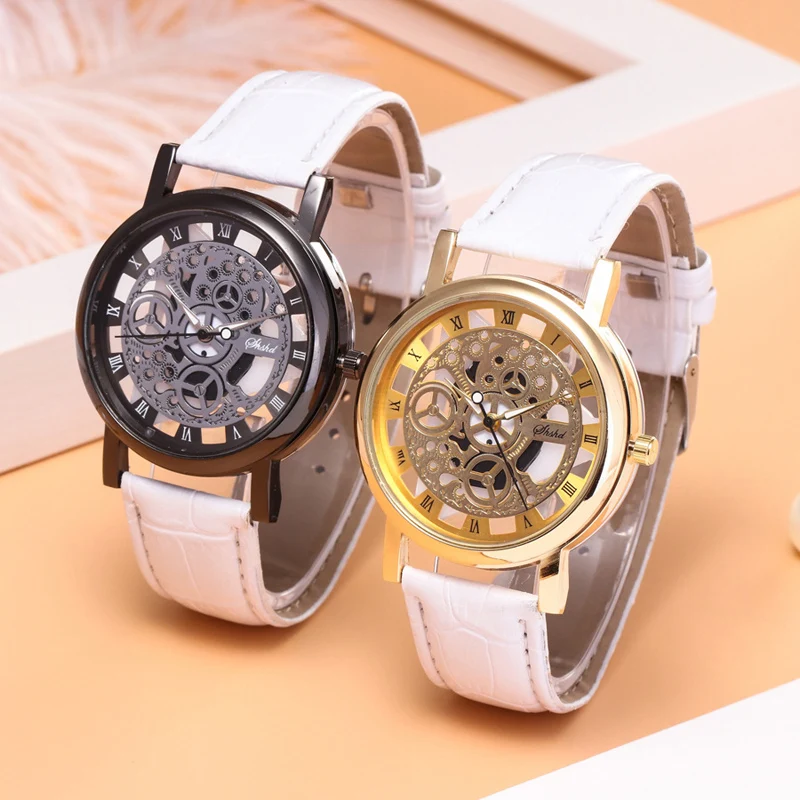 Часы наручные с перфорацией, Уникальные Роскошные Спортивные кварцевые с ремешком из искусственной кожи и круглым циферблатом, LXH, для мужчин и женщин