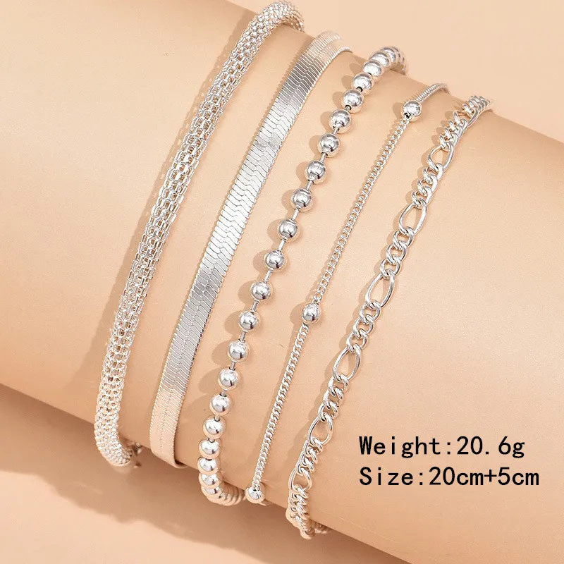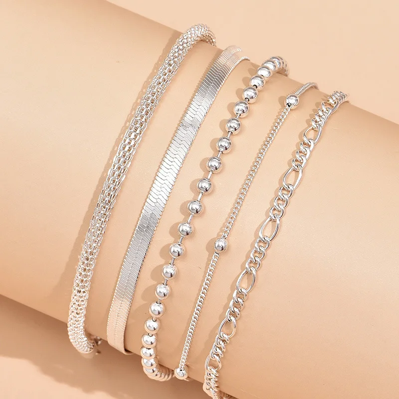 5 шт.компл. Многослойные Бусины змеиная цепочка набор ножных браслетов для женщин Босоножки браслет на ногу украшения для ног подарки